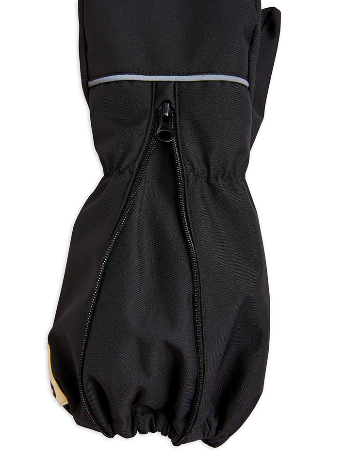 Heavy-duty padded Mini Rodini Alaska Mittens Black made from 100 % recycled polyester.