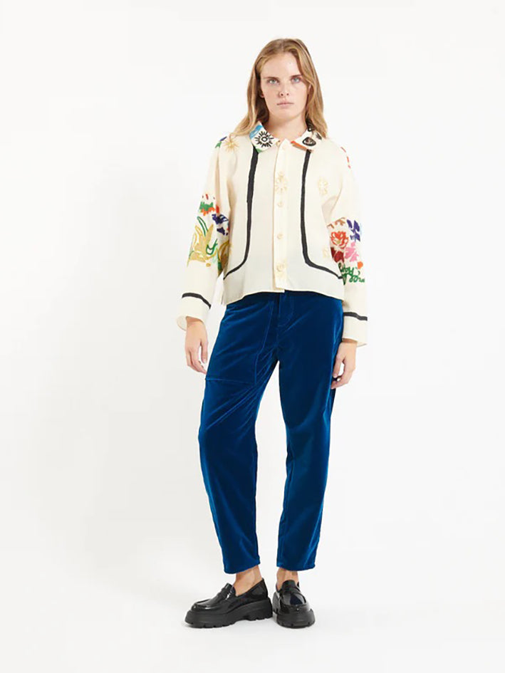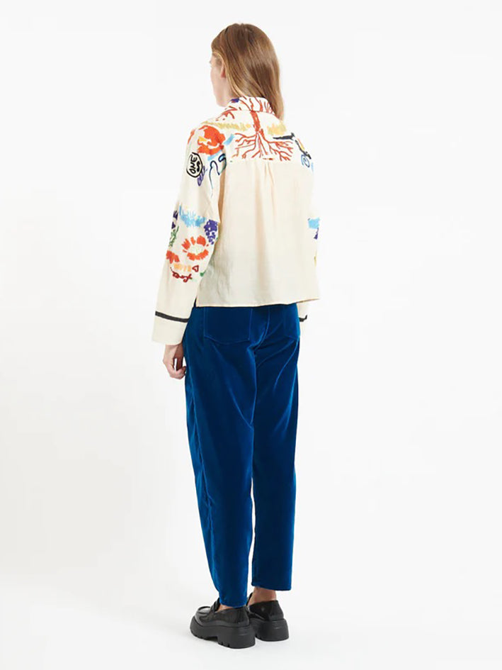 While the intricate embroidery and prints give the shirt a unique and colorful flair, the quality of the materials and attention to detail make it a piece that can be cherished for years. Made in Germany and crafted with Anntian's characteristic care, this shirt bridges the gap between traditional craftsmanship and modern, sustainable fashion, telling a story as vibrant as the person who wears it.