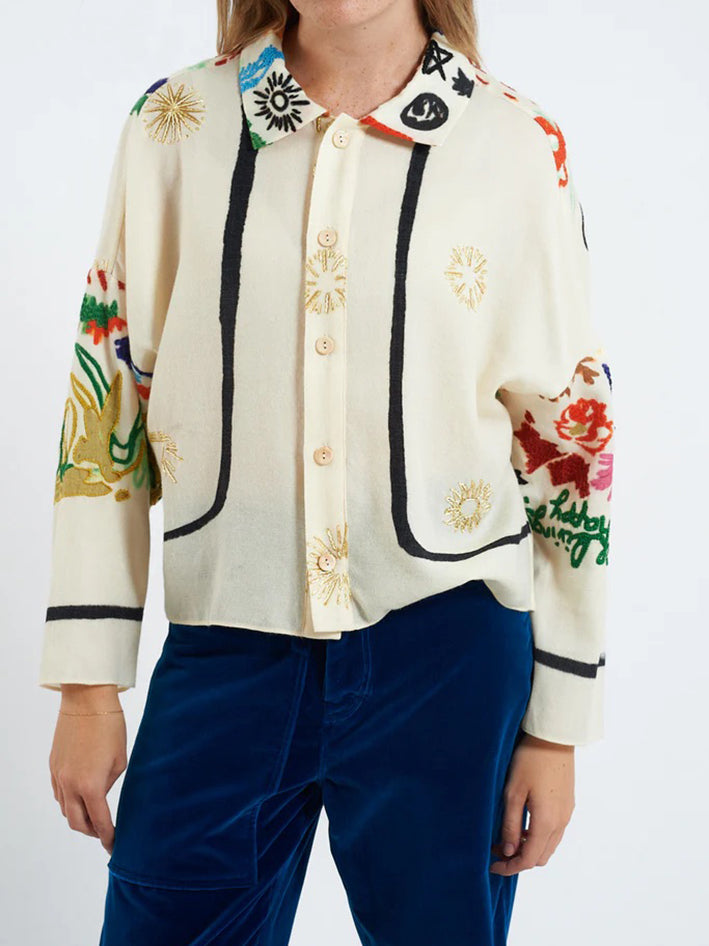 The "Hand Emroidered Wool Shirt" is a testament to Anntian's commitment to ethical fashion and sustainability. Printed and hand-embroidered in India by artisans under the Fair Wear Foundation (FWF), this shirt reflects the brand's philosophy of slow, thoughtful design and global craftsmanship. Founded by Anne Hilken and Christian Kurt, Berlin-based Anntian creates garments that are meant to be personal, long-lasting, and full of life.