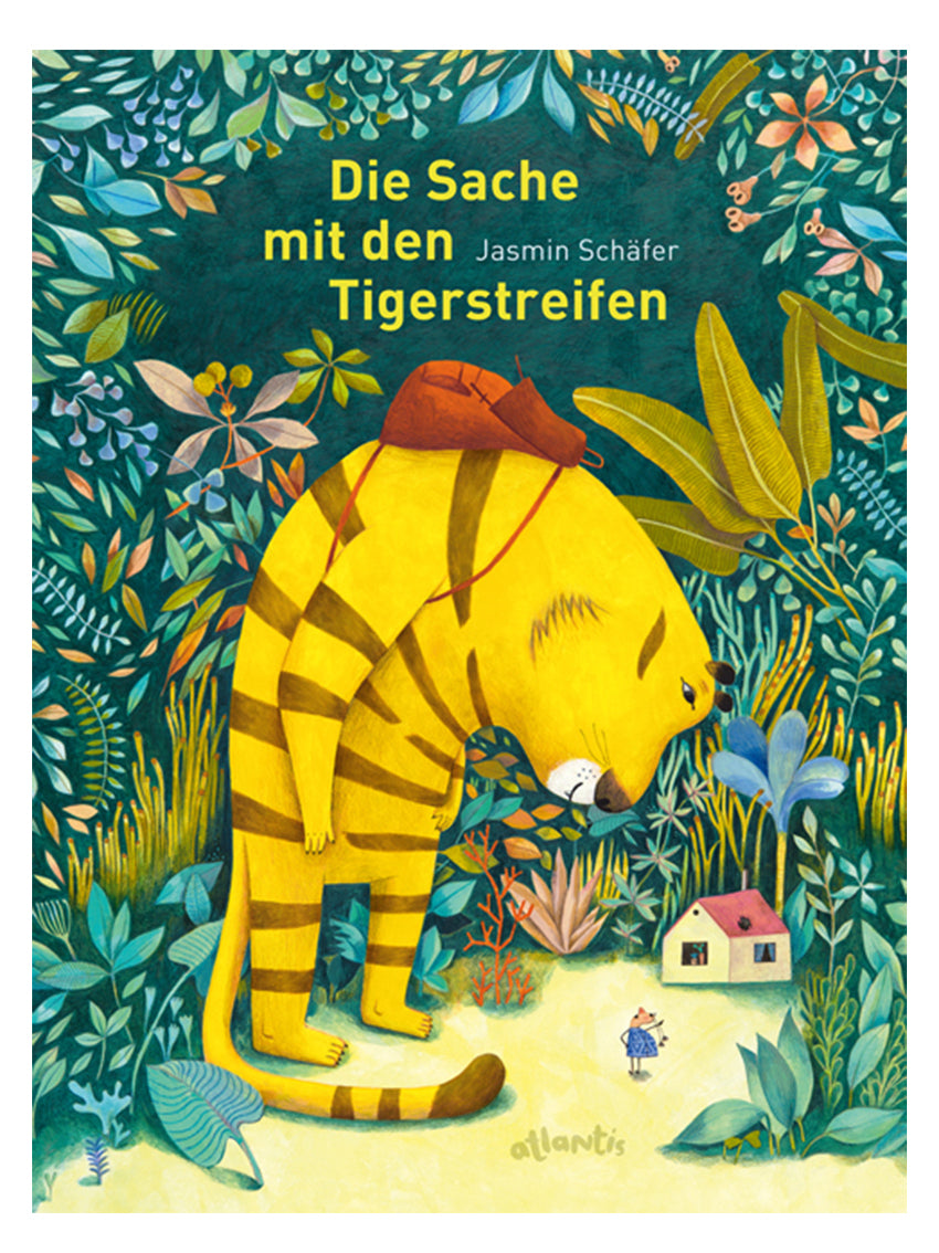 Der Tiger hat Lust auf ein Abenteuer. Er packt seinen Rucksack und zieht los. Bald trifft er auf einen heulenden Hund: Dessen Ball klemmt oben im Baum, aber der Leiter fehlen Sprossen. Der Tiger hilft – er ersetzt die Sprossen mit Streifen aus seinem Fell. Auf ähnliche Weise flickt er das Leck im Boot einer Giraffe oder das Hausdach eines Käfers. Und er hilft sogar den Fröschen über die Straße: mit Tigerstreifen als Zebrastreifen.