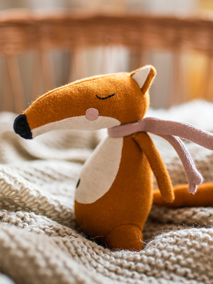 The Ava & Yves Baby Rattle Fox is made of fine knit fabric made from 100% organic cotton (GOTS) Filling: 100% polyester (recycled)