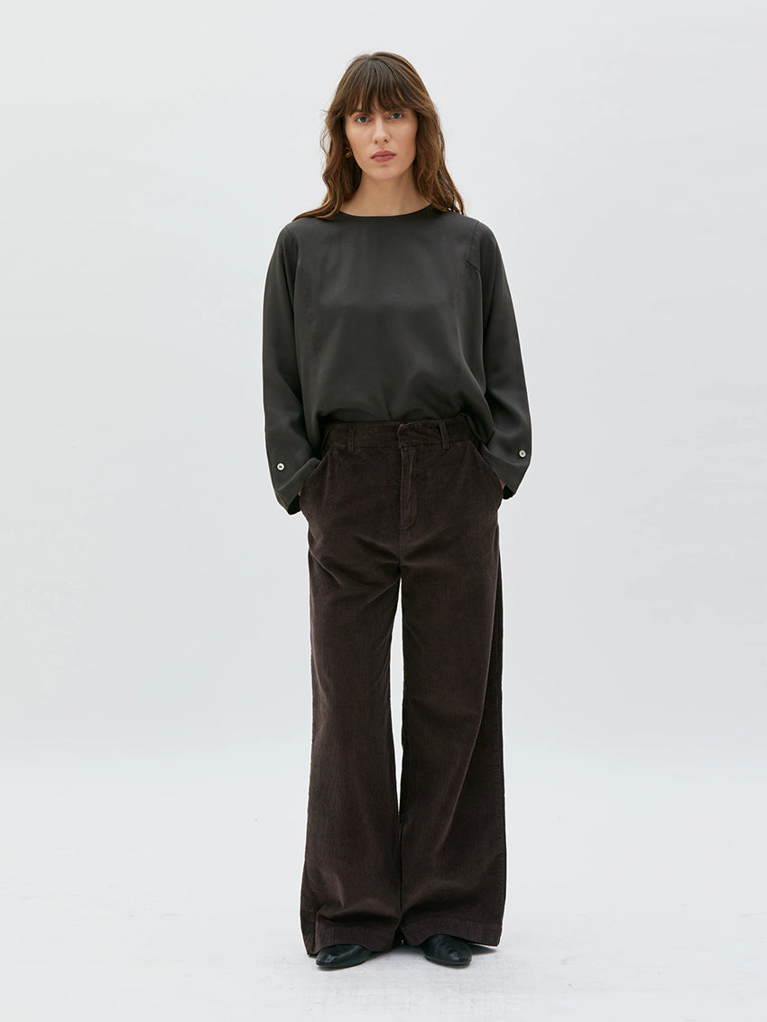 Aya Wide Leg Corduroy Trousers Cocoa Brown