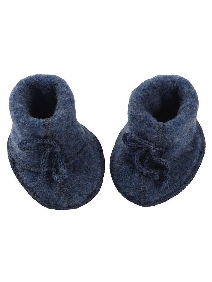 These feather-light Baby wool Fleece Shoes by Engel Natur in Blue Melange are perfect for the little ones. Thanks to the lanolin content of the wool, these cute shoes are dirt and water repellent. Made in Germany Two sizes: 1 - 10.5 cm sole length / 2 - 13 cm sole length Material: 100% merino virgin wool Wool fleece: Organic fleece made from pure merino wool is perfect for delicate baby skin. The fluffy undercoat comes from sheep from controlled organic animal husbandry and is obtained without mulesing. It warms without heat build-up, can absorb a lot of moisture without becoming clammy, and regulates the body temperature of the little ones in a natural way.