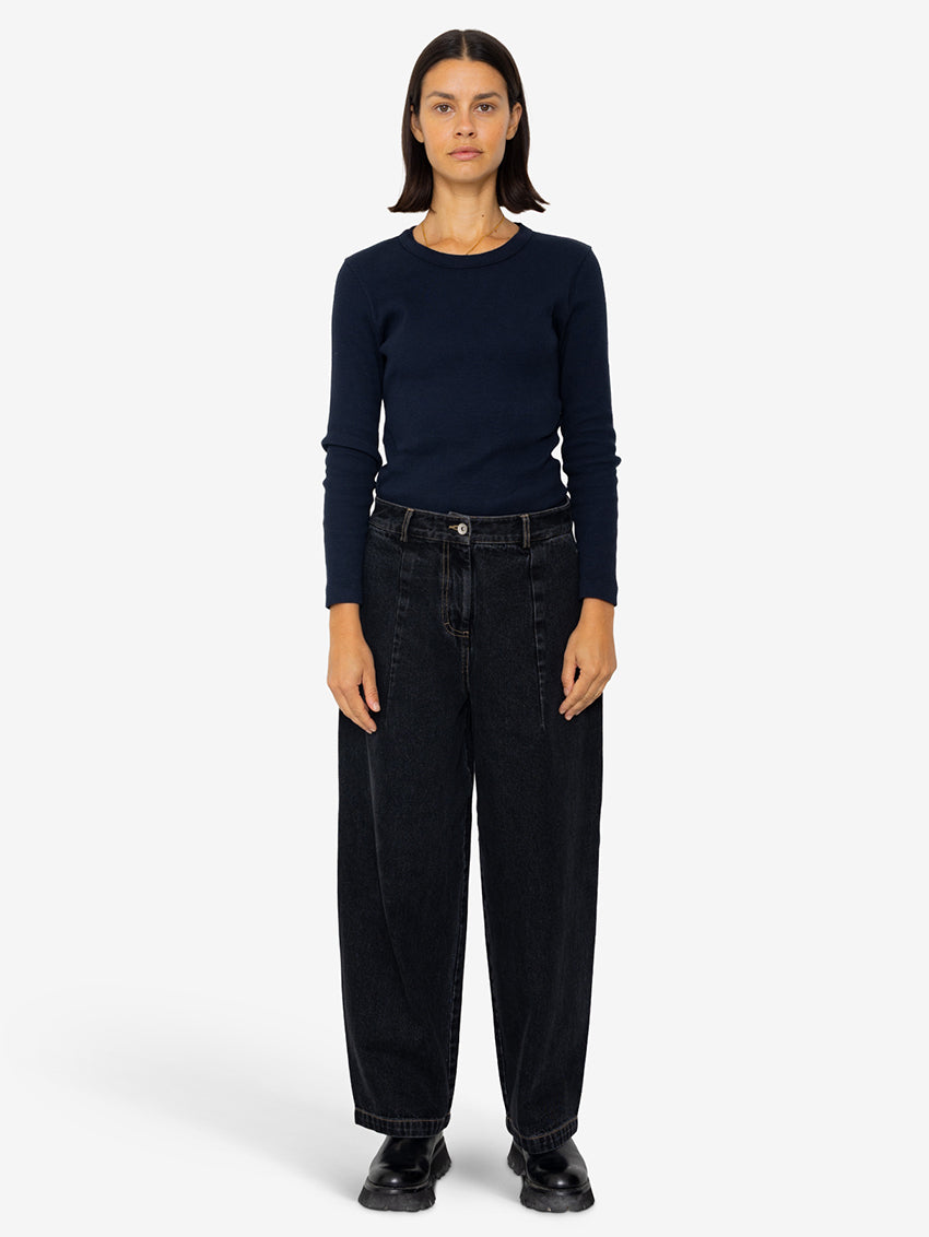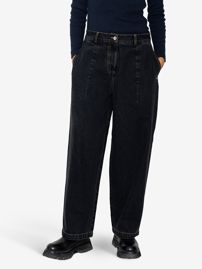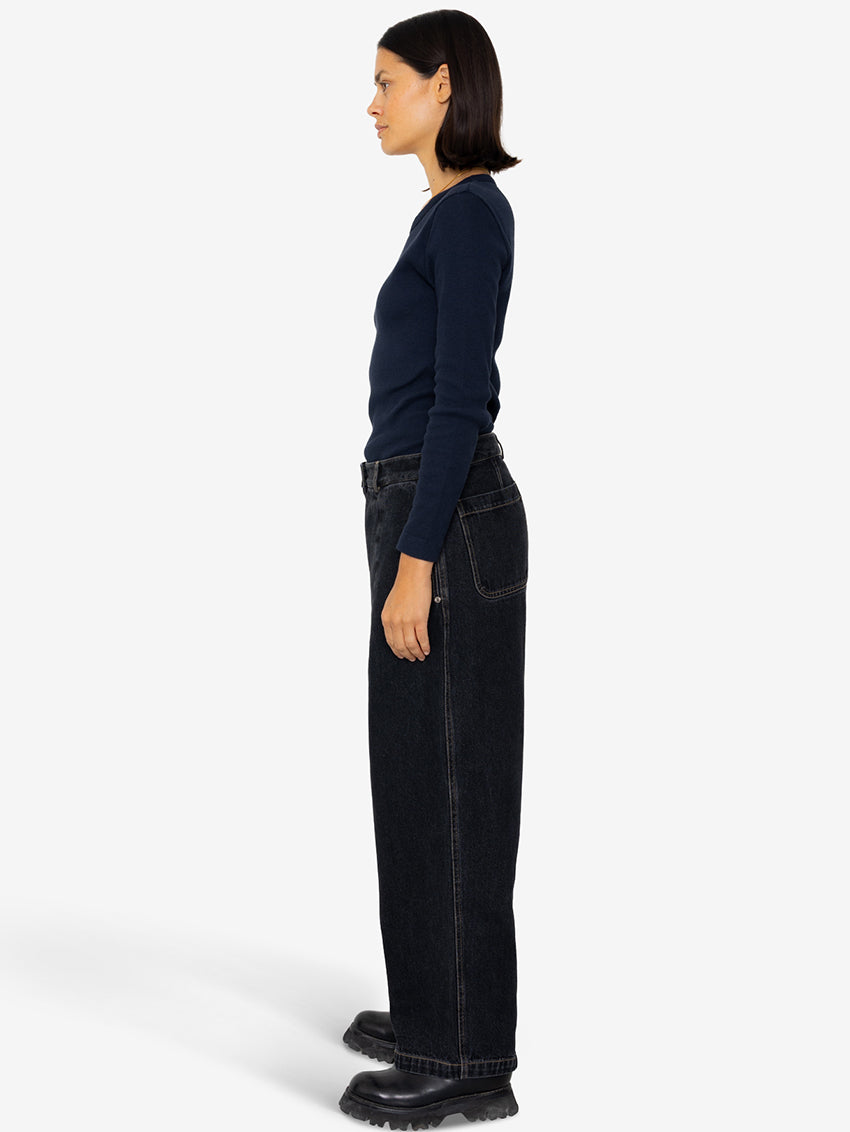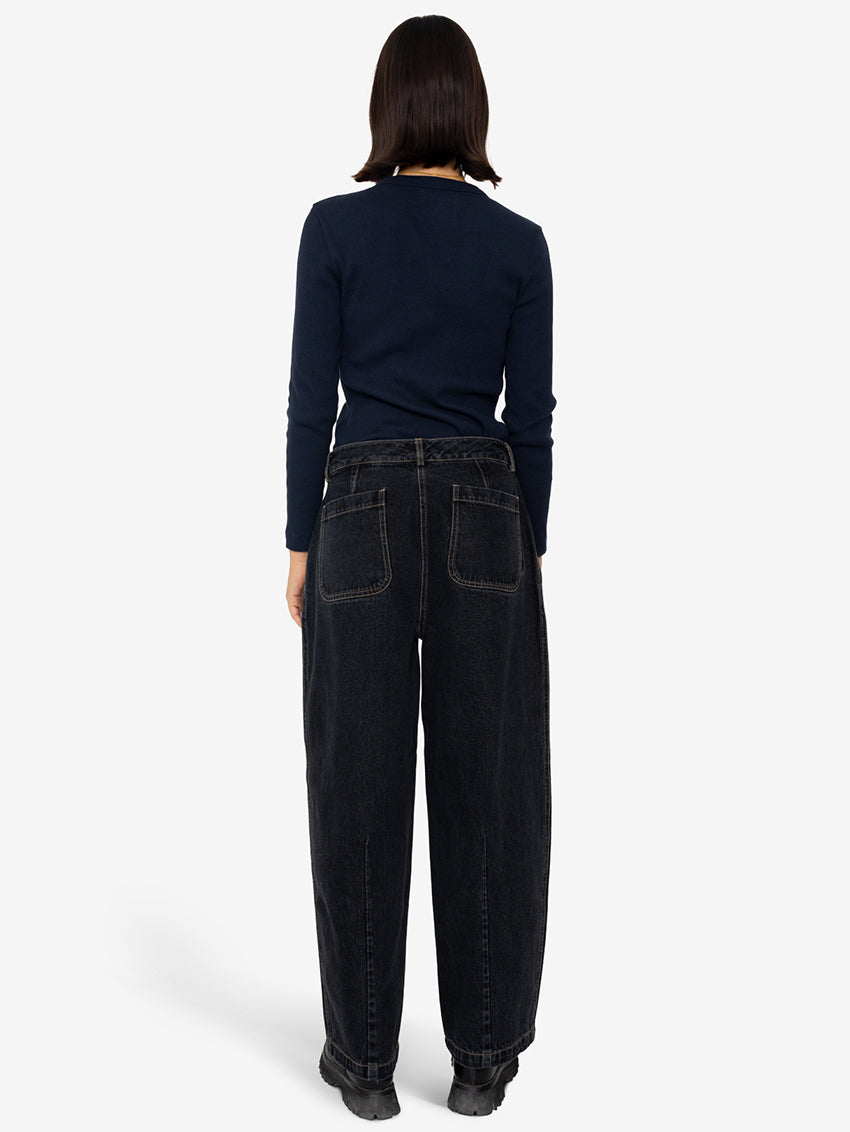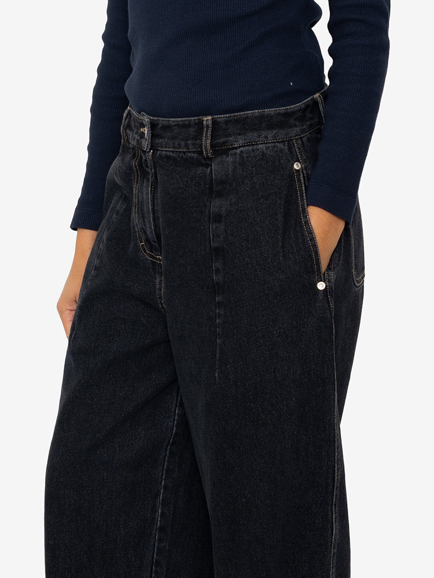Baggy Trousers Washed Black Denim
