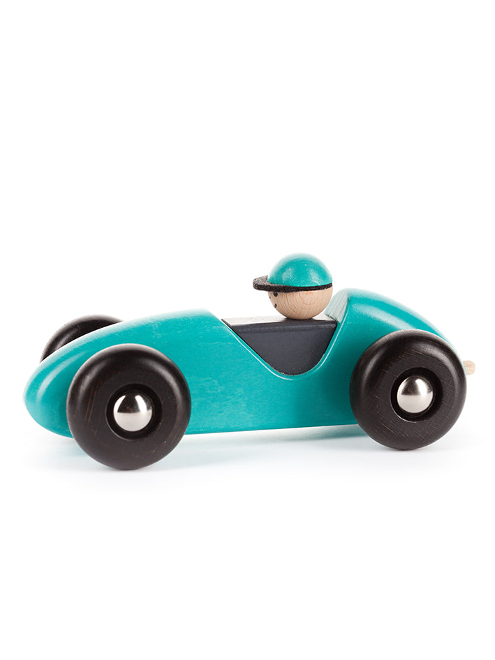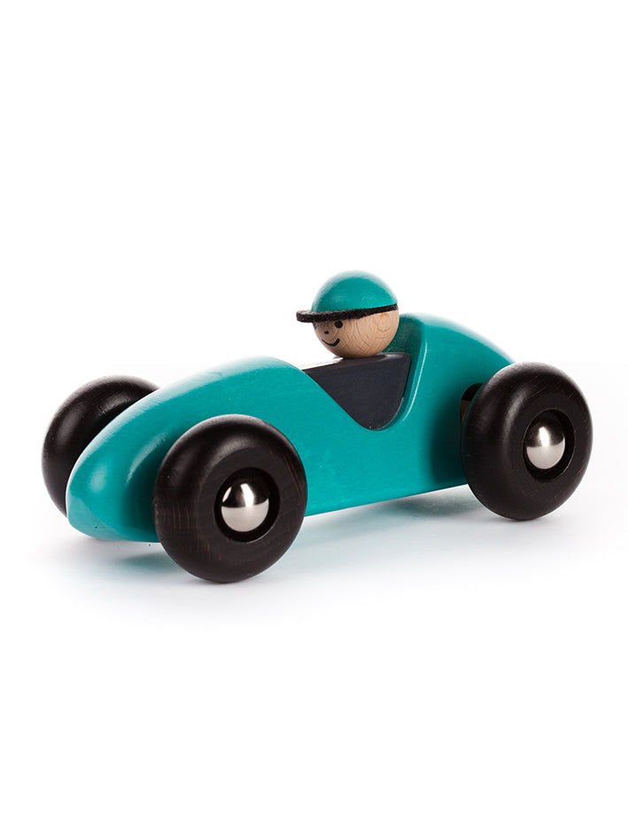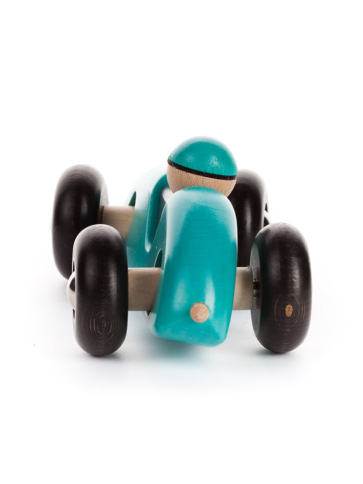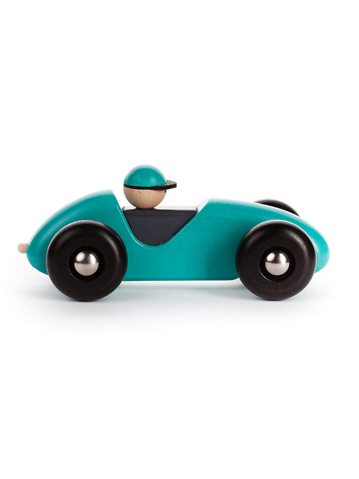 Bajo Left and Right Car in Blue Thanks to its clever construction, this ingenious car has the fluid ability to turn in either direction. Beautifully crafted from solid wood, it proudly boasts unique retro styling and is sure to be a favourite with your child. Perfect for taking on high speed corners at the race track or a drive through the countryside. Only carefully selected high quality materials from certified local suppliers, who respect European eco-standards of wood production have been used. Produced with certified non-toxic paints based on natural components, which fulfil EU safety standard (EN71) and US norms. A range of water based paints as well as oils are used to protect the wood. Size: 16 x 8 x 7 cm