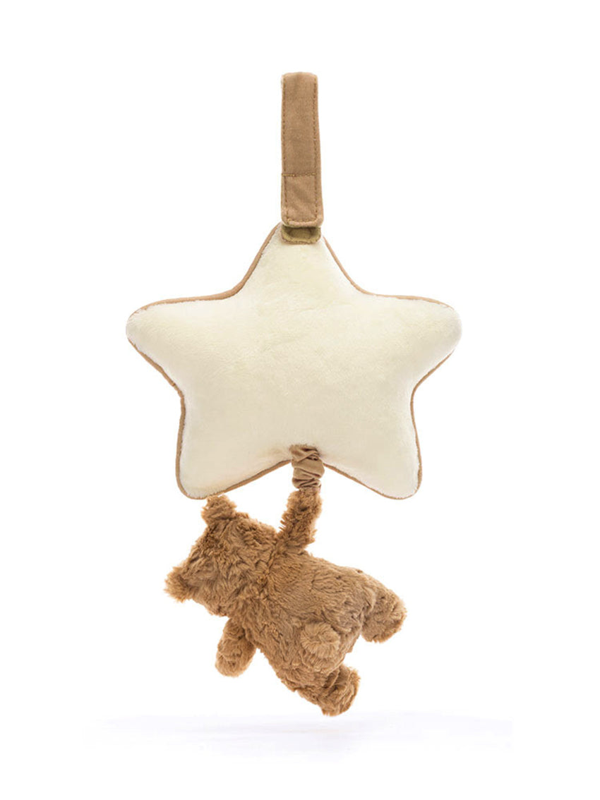 Bring calm to bedtime with this soft cream star featuring a tiny Bartholomew Bear tucked underneath. Pull gently to play a soothing lullaby – perfect for cots, prams, or play spaces. Ideal for little dreamers who love soft, comforting company.