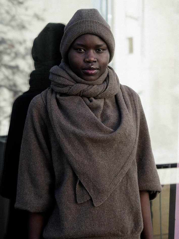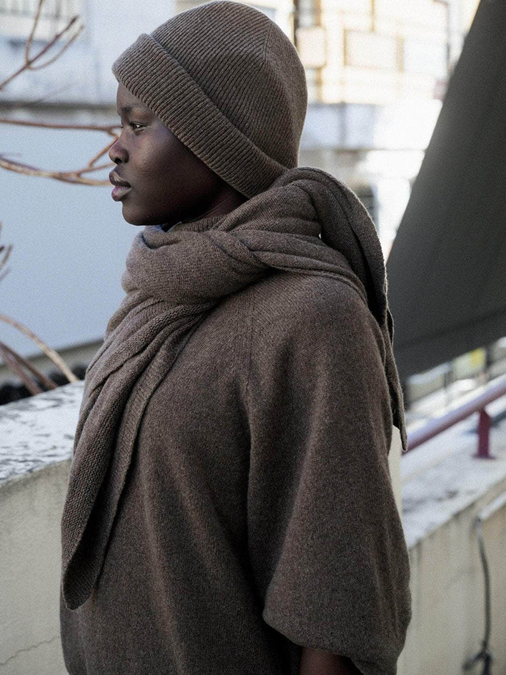 Recycled cashmere Whit Scarf in Teak Brown from Baserange 95% Recycled Cashmere 5% Wool Made in France