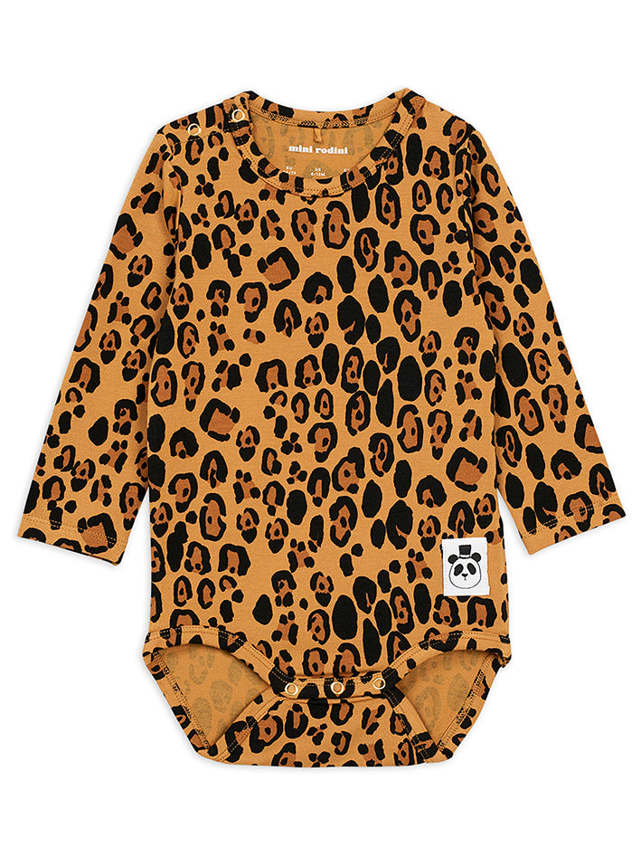 Long Sleeve Body with Leopard-print, made in soft TENCEL™ Lyocell with a hint of stretch for comfort. Featuring a sewn-on Mini Rodini Panda label at the front. The body has snap buttons at the crotch and shoulder for easy dressing.