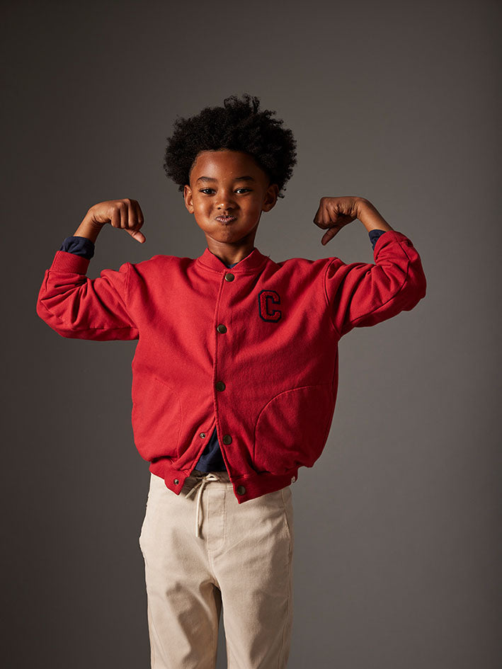 This Berlin Cardigan Sweater in Red Velvet by My Little Cozmo is part of our organic cotton kids clothes collection, made from premium brushed fleece. It features a rounded, ribbed neckline, snap button closure, dropped shoulders, and side pockets for convenience. Ribbed cuffs and hem provide a secure fit. Smooth on the outside and soft, warm, and cozy on the inside, it’s designed to keep kids comfortable. A patch "C" on the chest adds a subtle branded detail. Features Made from organic cotton, sustainably grown and ethically sourced. Softly textured with an exceptionally gentle feel. Light stretch for added comfort. Gentle on the skin and the planet. A sustainable choice for your kid’s wardrobe. 94% organic cotton, 6% elasthane. Knit