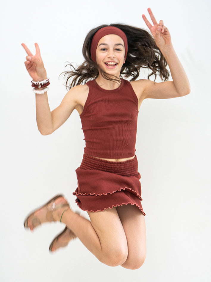 This body-hugging silk seamless Billi crop-Top in Hibiscus from Minimalisma for girls offers a close fit design, ideal for active days or relaxed wear. Made from super soft silk-cotton blend, it's not only comfortable but also exudes chic elegance. Silk is known for its hypoallergenic properties and gentle touch against the skin. This, combined with the seamless construction of the garment, makes this style an excellent choice for kids with sensitive skin. Quality: 70% Silk, 30% Cotton