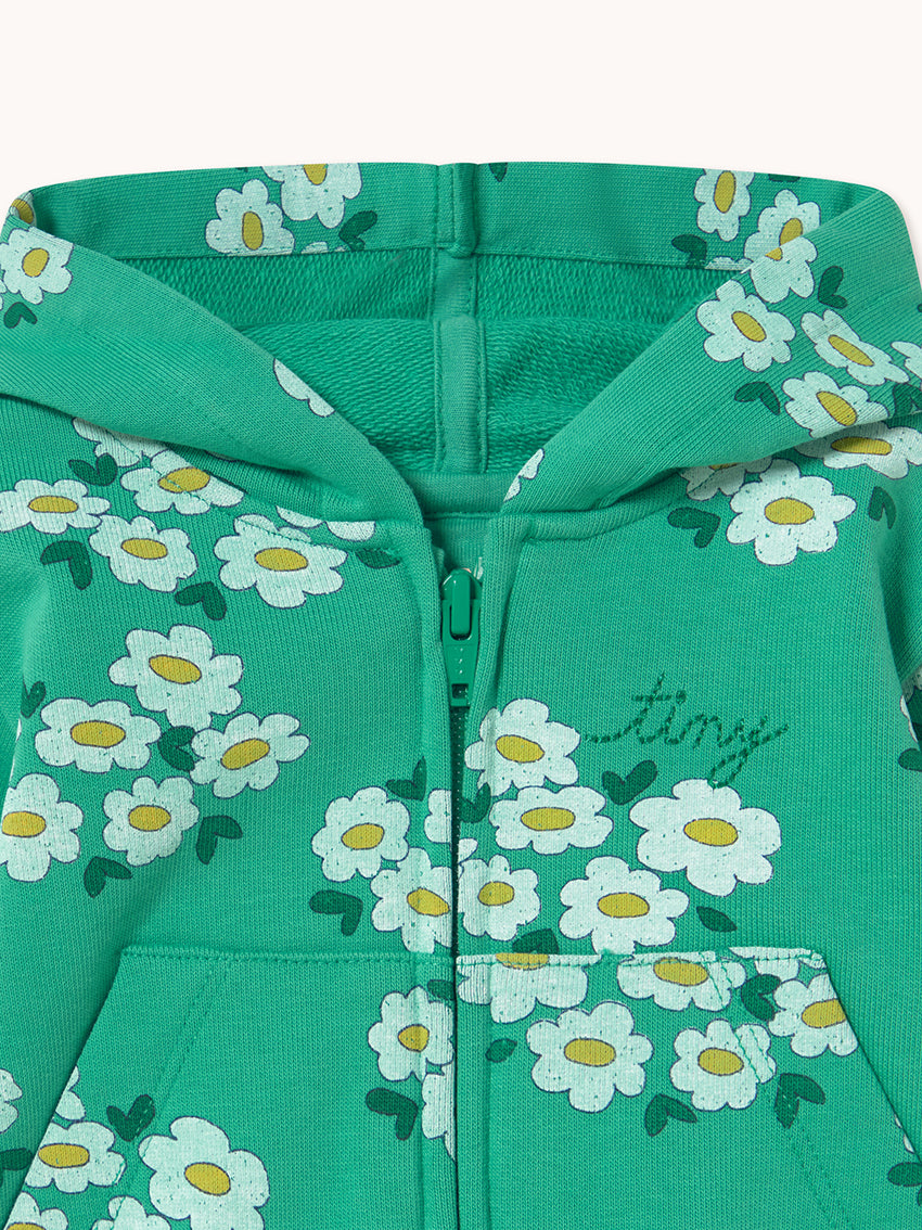 This Blossoms hoodie, crafted from 100% organic cotton. Its classic and functional design features a front zipper, kangaroo pocket, and ribbed cuffs and hem for a comfortable and durable fit. The soft, natural fabric provides warmth and coziness, making it a perfect choice for any occasion. Ideal for a casual or sporty look, this hoodie blends sustainability with contemporary style for everyday wear.