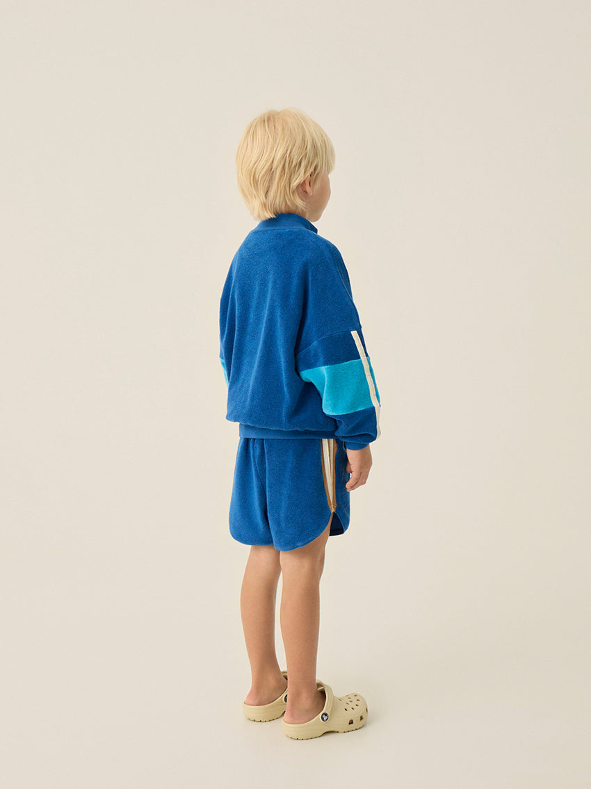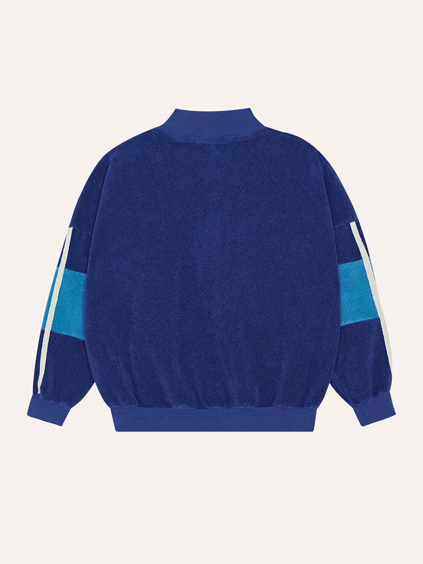 Retro vibes in this blue sweatshirt with contrasts. With oversized fit and rib in cuffs and neck for more comfort it is perfect for summer afternoons.