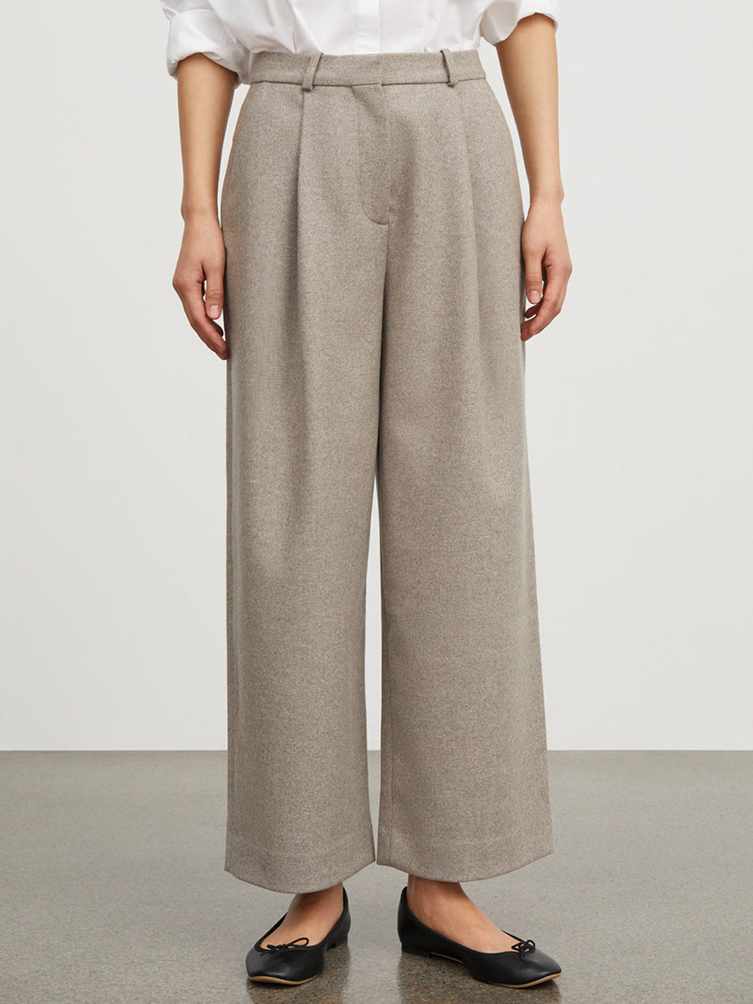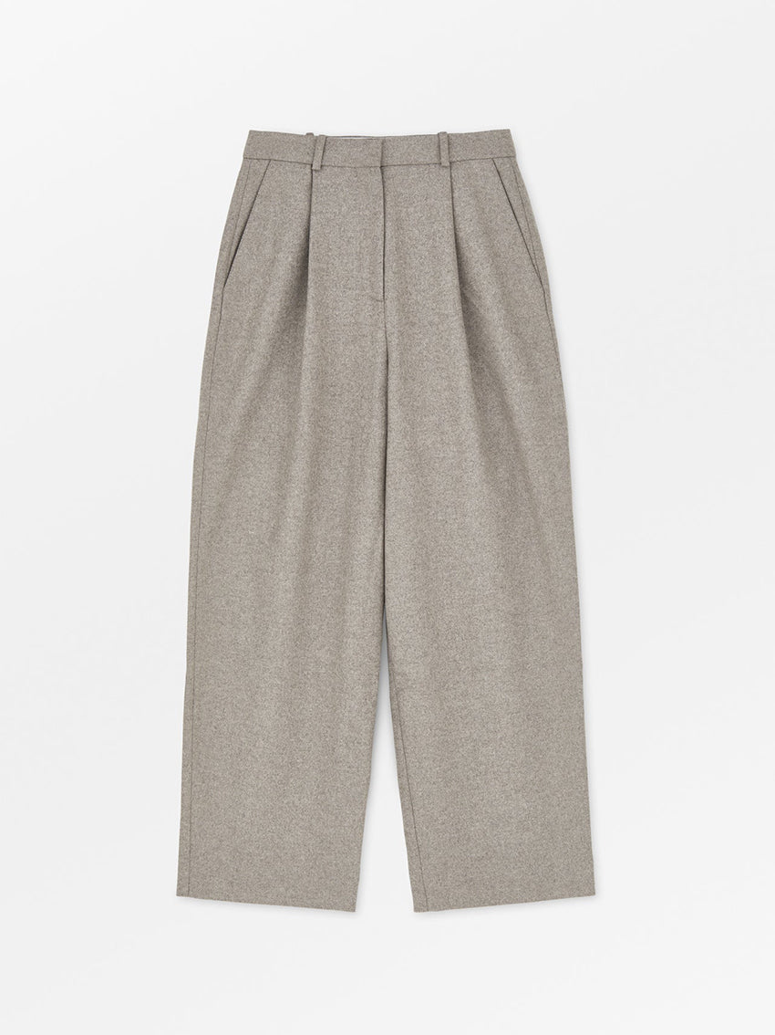 The Skall Studio Bob Trousers in Light Grey are a pair of cropped, wide trousers with a casual look made in recycled wool.