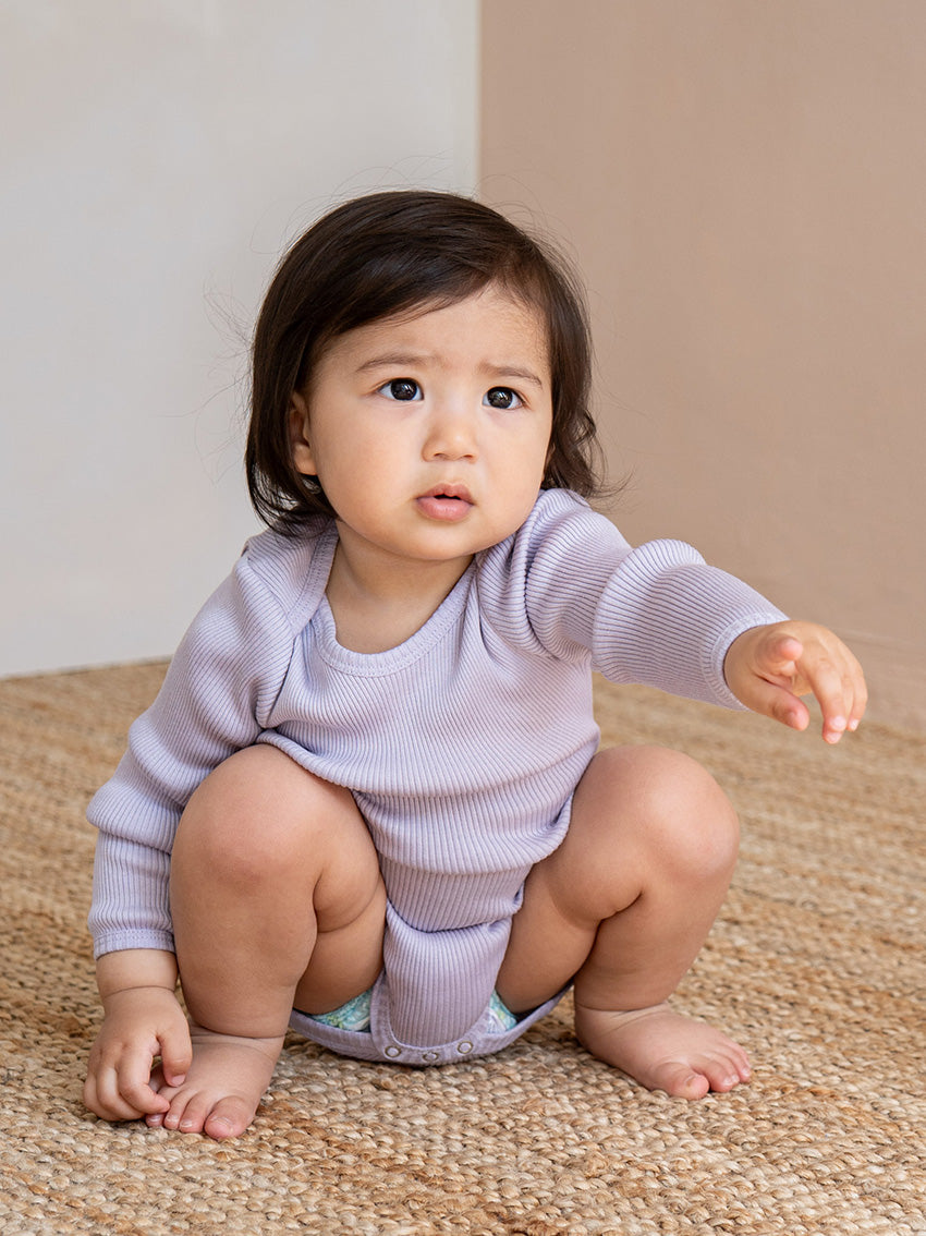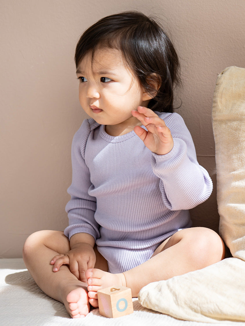 The seamless long-sleeve Bono Body in Mauve from Minimalisma is crafted in a soft silk-cotton blend. The body features an envelope neck opening and YKK nickel-free snap buttons for easy dressing and convenience. Silk is known for its hypoallergenic properties and gentle touch against the skin. This, combined with the seamless construction of the garment, makes this body an excellent choice for kids with sensitive skin. Quality: 70% Silk, 30% Cotton