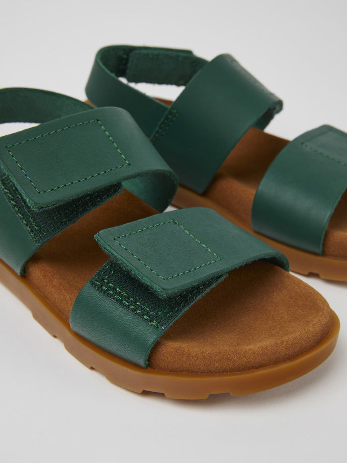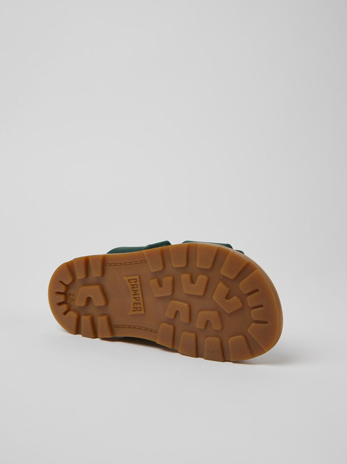 Children's Green leather Sandal by Camper Kids with Velcro closure, non-removable OrthoLite® Recycled™ footbed and rubber outsole. Brutus for children with the robust urban look and the excellent sole grip is particularly durable thanks to the all-round seam.