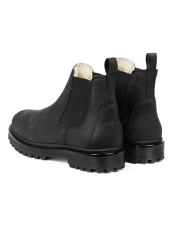 Classic Angulus Chelsea Boots in Black made of leather with elastics on the side Rubber track sole Wool lined Handmade Material: 100% Leather Made in Portugal