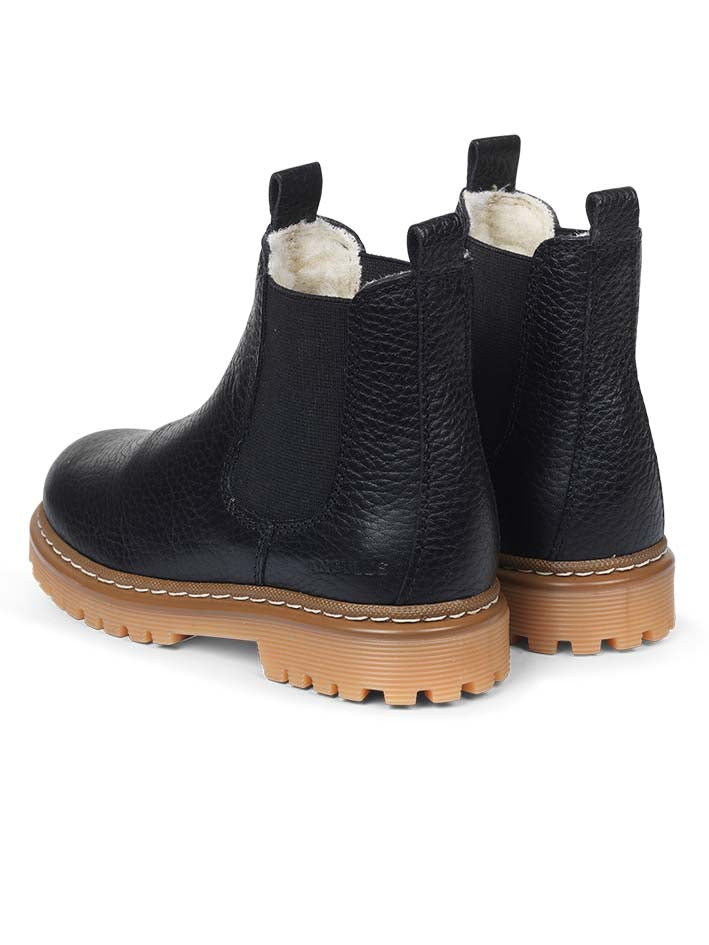 Classic Chelsea Boots in Black with elastic and Wool Lining. Solid heel cap for maximum support. Soft and flexible Track rubber Sole. Made from leather in line with ANGULUS’ dna. Produced in Portugal and lined with 100% chrome-free leather.