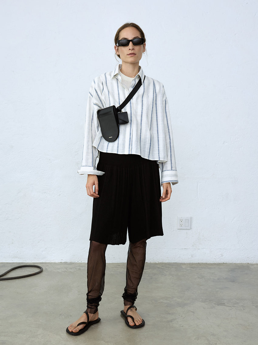 With adjustable belt and two different compartiments to add functionality, this standout accesory will elevate your outfits with a minimal stylish touch.