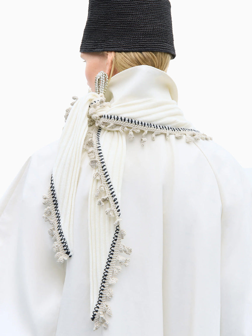 This soft triangular bandana is the perfect transitional accessory, offering both style and versatility. It features a contrasting black topstitch and is finished with handmade natural crochet details, adding a unique and artisanal touch. Ideal for layering or adding a finishing detail to any outfit.
