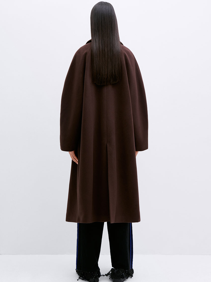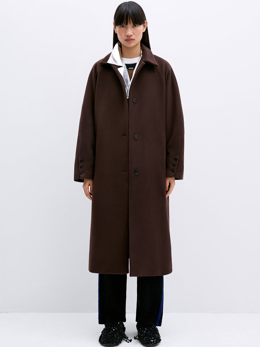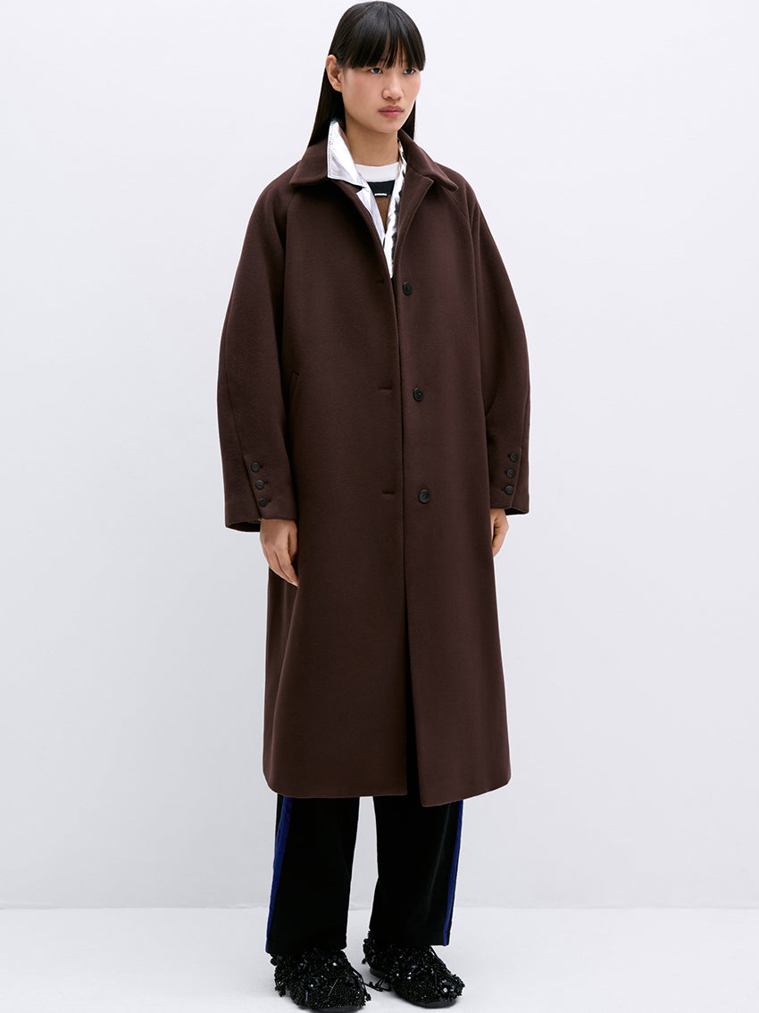 Detailed with frontal fastening with buttons, side pockets, back opening and pointed collar.