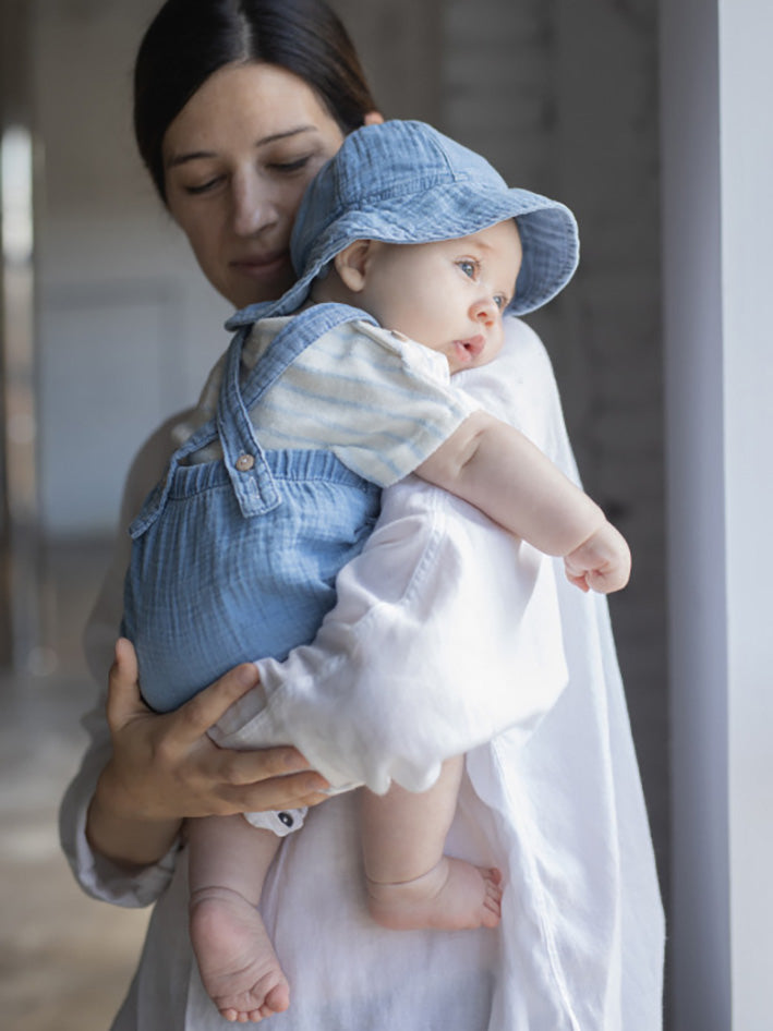 The 1 + In The Family Daniele Hat in Denim is made from 100% cotton. Made in Spain