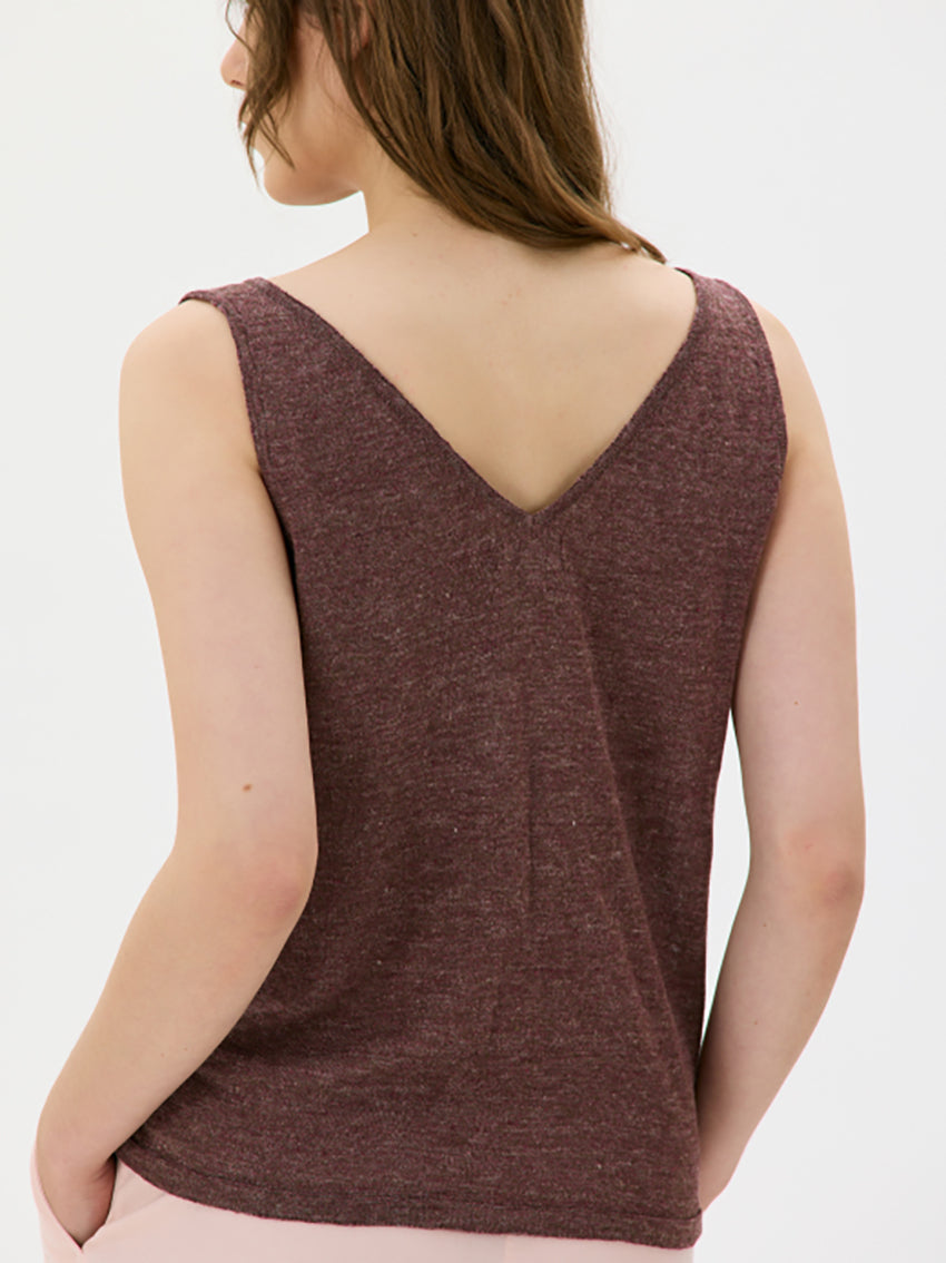 This fine-knitted sleeveless top is a true summer wardrobe staple. Designed with a V-neckline at both the front and back, it adds subtle detail to its minimalistic style.