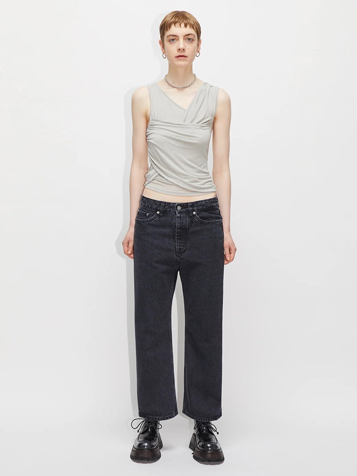 The Drop Jeans in Washed Black are a five-pocket style cut from a rigid 100% certified organic cotton quality. These 5-pocket HOPE jeans has a straight silhouette with a dropped crotch and cropped leg. Details include HOPE branded denim buttons and trims. The HOPE Denim washes are achieved with advanced techniques that drastically reduces the amount of energy, chemical and water usage. - Wide, cropped leg - Made in Portugal - 100% certified organic cotton - Washed with an eco laundry company that recycles 97% of its water - Niki is 176 cm / 5´8" tall and wears a size 27
