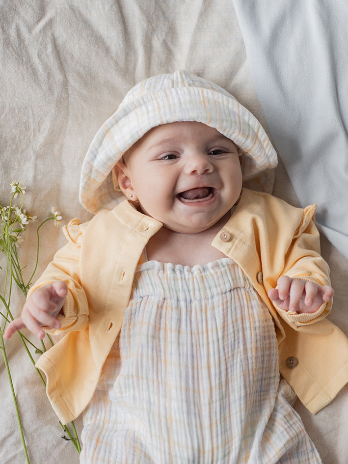 The 1 + In The Family Erin Hat in Ecru is made from 100% cotton. Made in Spain