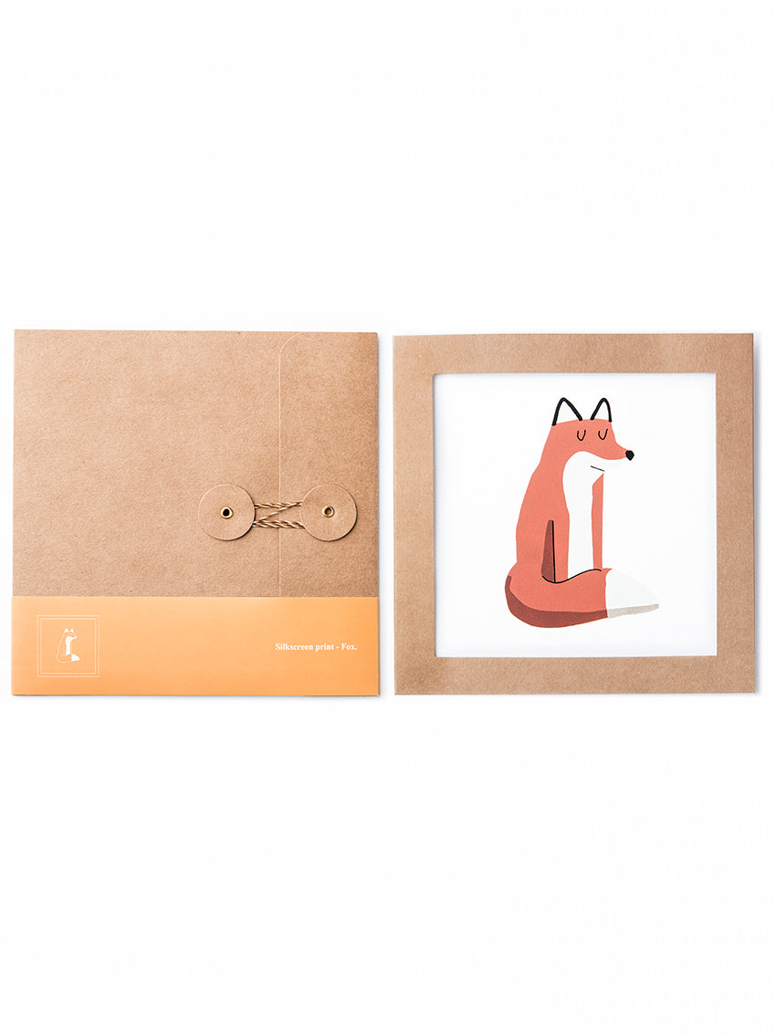 Silkscreen print: fox. Dimensions: 18cm x 18cm.