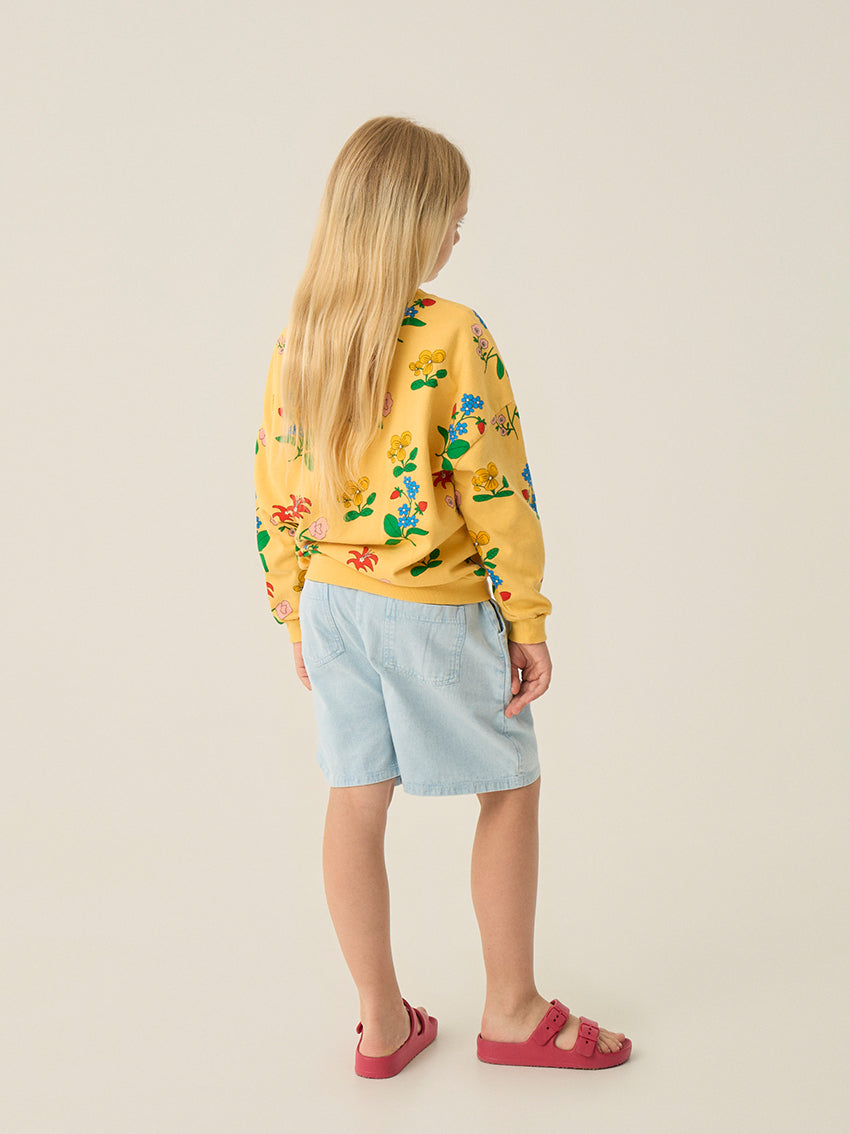 Sweatshirt with a colorfull print of flowers all over it. With oversized fit and rib in cuffs and neck for more comfort. It is a very versatile garment that complete any summer outfit.