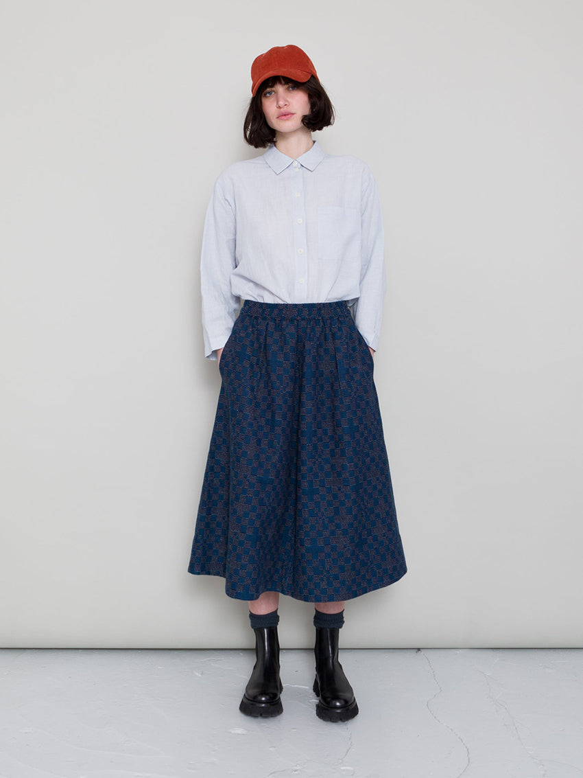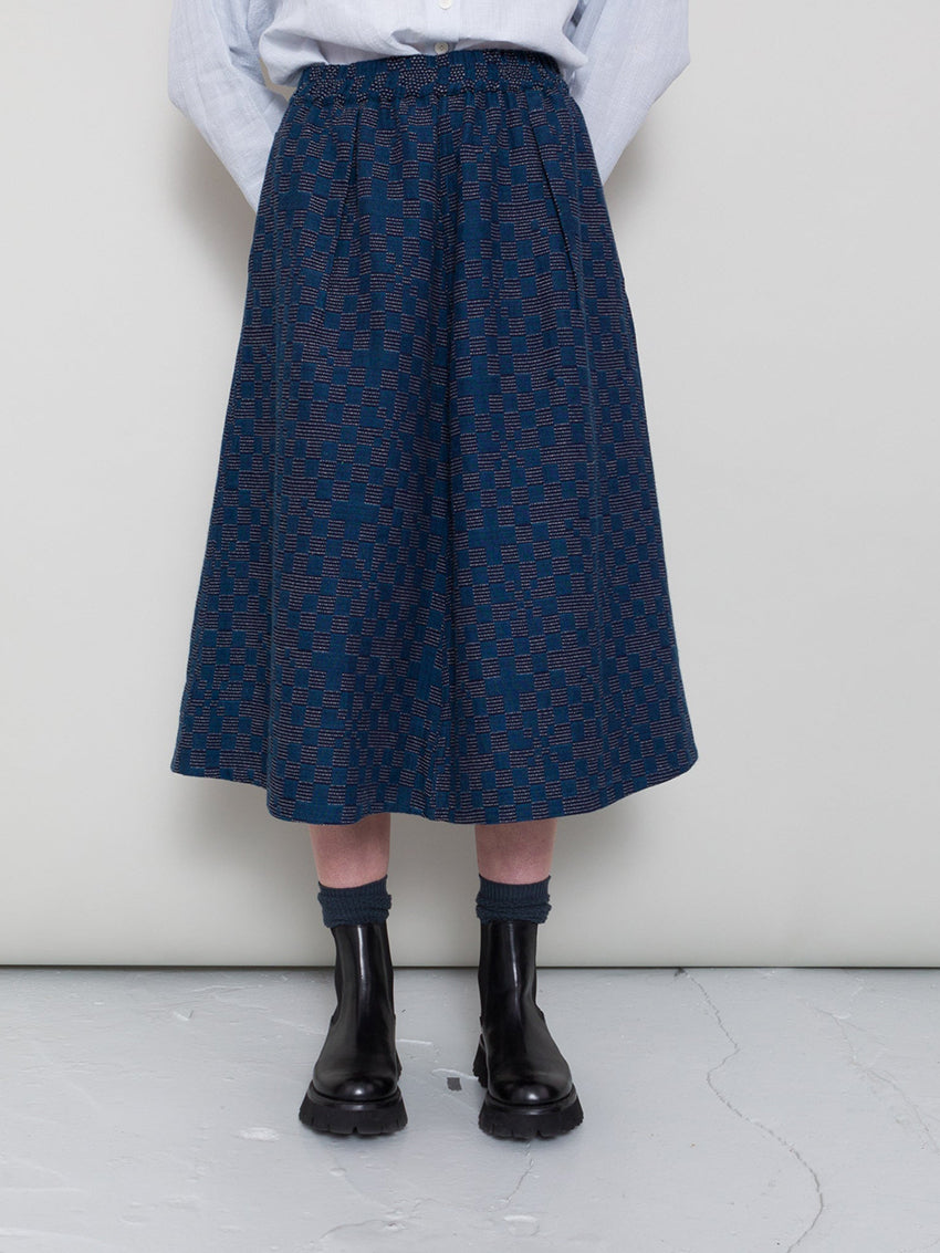 Full Seam Skirt Indigo Broken Checkerboard