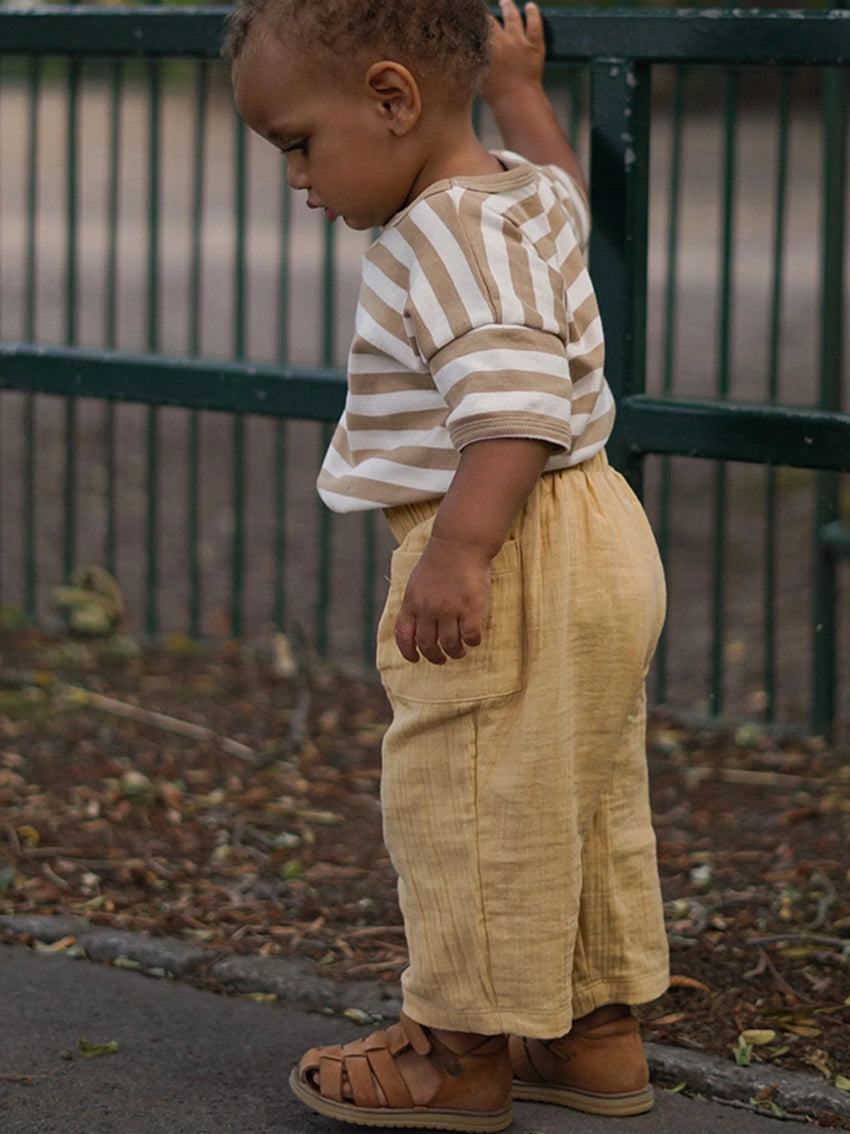 Say ahoy to the Organic Zoo Honey Fisherman Pants! 100% organic muslin. Made of super-soft muslin, they will keep your little one comfortable and relaxed all day—style with any of our boxy tops or sweatshirts from Organic zoo range. Designed in the UK. Made in Europe.