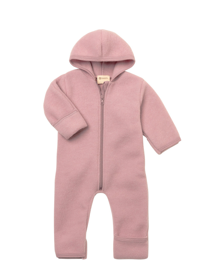 The cosy ENGEL baby fleece overall made from 100% organic virgin wool (kbT) keeps your little one warm and naturally protected. Soft, breathable wool fleece prevents overheating while the practical fold-over cuffs warm hands and feet or allow the overall to grow with your baby. With hood, smooth zip and IVN BEST certification, this Made-in-Germany classic is the perfect winter essential for babies.