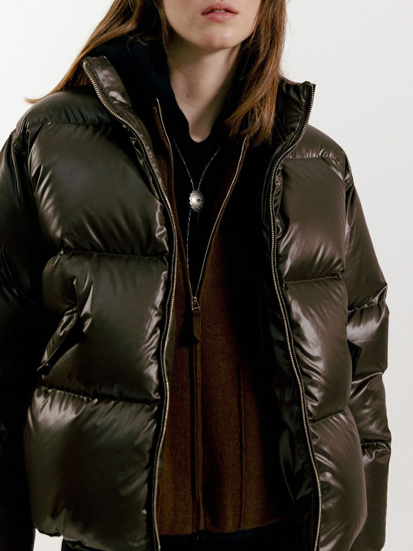 The stand collar design that blocks the cold wind is not only practical but also adds neatness, and the voluminous silhouette creates an active and casual mood.