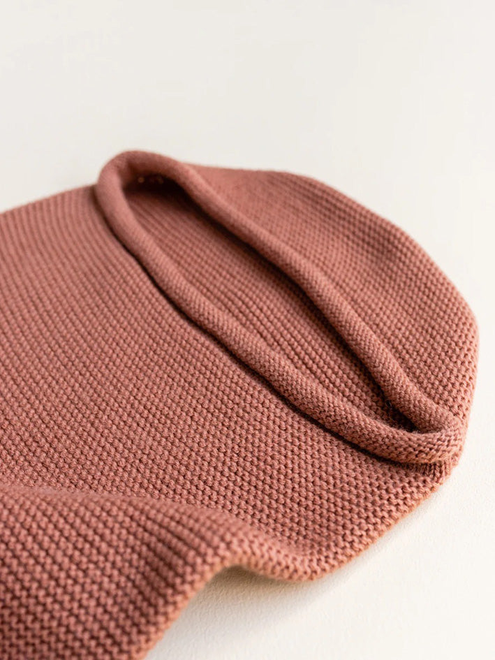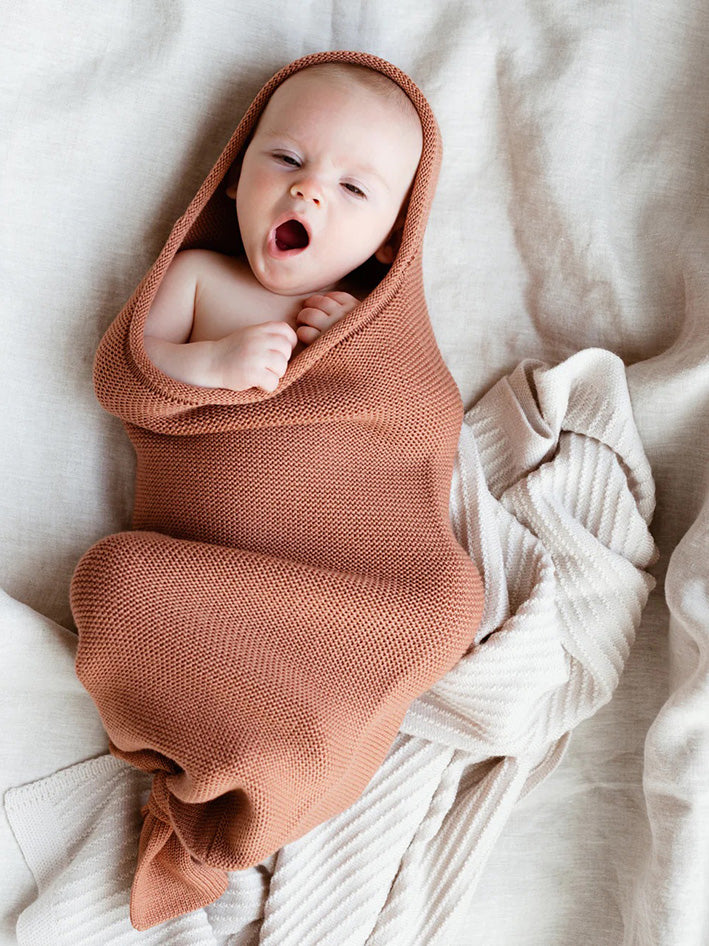 WHY USE THE Hvid COCOON in Brick The cocoon imitates a womb. It keeps your baby calm by creating the warm and restricted space like inside the womb. When you use it from birth, they will get used to the feeling of the cocoon and settle in easy. Practice has shown that all babies calm down when they are lying inside the cocoon. Children are enclosed by a womb for a long time. This cocoon gives them the same feeling. It’s a softer form of swaddling your baby. The baby can still move, and is cosied up. Merino wool is thermoregulatying and ensures a good temperature for the baby has. HOW TO USE The cocoon can grow with your baby. Simply place the knot high whith newborns and make it come down when your child grows. Start by putting the button very high on newborns and gradually lower it as you go as your baby grows. Like this your baby cannot slip down. You can place the arms inside the cocoon or leave them out. Put the cap on or off. WHEN TO USE To use during daytime: for supervised naps, in the stroller, to calm your baby down when it has cramps. When your baby cannot settle down in the evening. Just to snuggle up. When you feed your baby. To make a walk. No loosing blankets. After a nice bath. THIS IS NOT A SLEEPING BAG MUST ALWAYS BE USED UNDER SIGHT