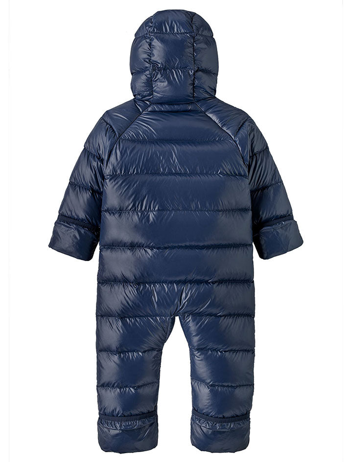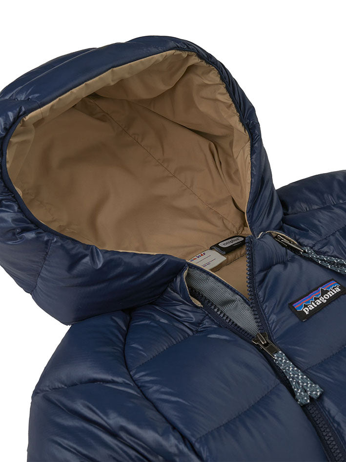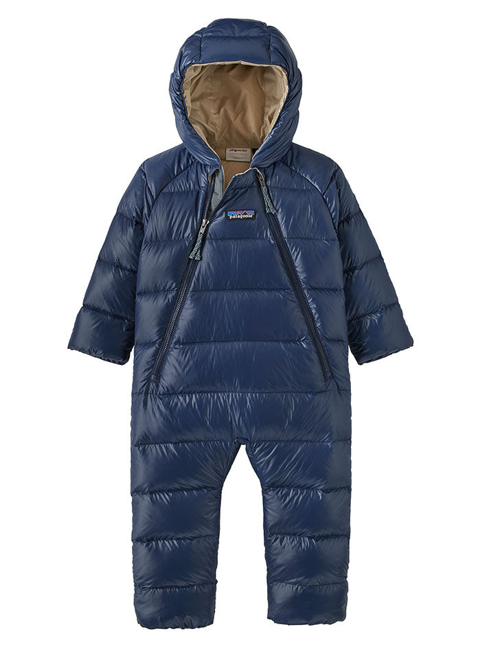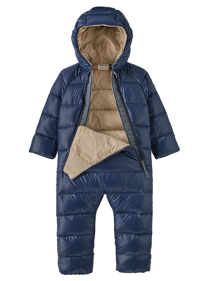 The Infant Hi-Loft Down Sweater Bunting New Navy is Patagonia`s warmest one-piece bunting has a shell made of NetPlus® 100% postconsumer recycled nylon ripstop made from recycled fishing nets to help reduce ocean plastic pollution and is insulated with 700-fill-power 100% Recycled Down (duck and goose down reclaimed from down products). Lined with soft recycled polyester fabric, this bunting has a generous length to help keep extremities protected whether your little one is crawling, standing or sitting.