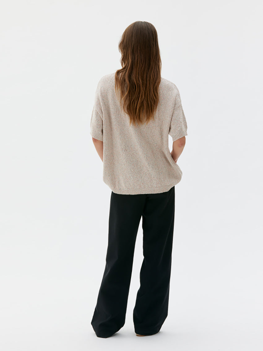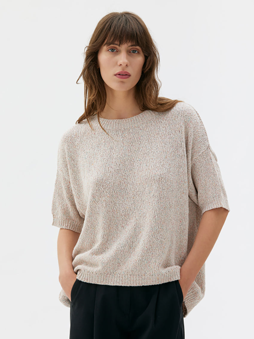 The chunky knit of this top offers a subtly uneven slub multicolour surface, creating a cool and relaxed everyday look.
