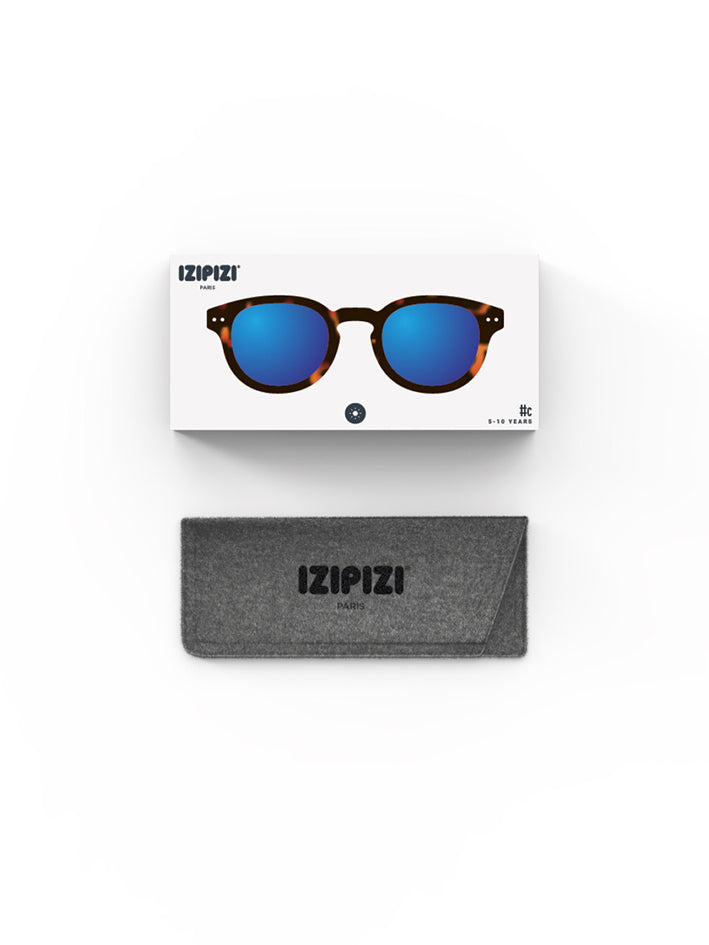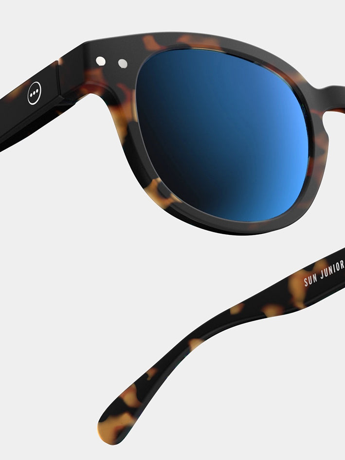 IZIPIZI looks after your children’s eyes with the JUNIOR SUN collection.Girls and boys aged 5-10 years can now wear stylish high-quality, coloured Sunglasses offering optimum protection thanks to our 100% UV, category 3 lenses.Fashion alert! Directly adapted from the adult #SUN collection, the #C JUNIOR SUN Tortoise with Blue Mirrors offers a very trendy mini square shape.Protection, comfort and design, a superb model for sunny days! The crystalline lens of children’s eyes is permeable to ultraviolet (UV) rays, and becomes impermeable only in adulthood. Flex hinges Flexible and comfortable arms, with spring hinges, which adapt to all face shapes and sizes. Sun lenses cat. 3 UV rays damage the eye cells. With time, the renewal will be done less and less well. The SUN glasses provide adapted protection with 100% UV category 3 lenses which protect from glare and filter 100% of ultraviolet (UV) rays.