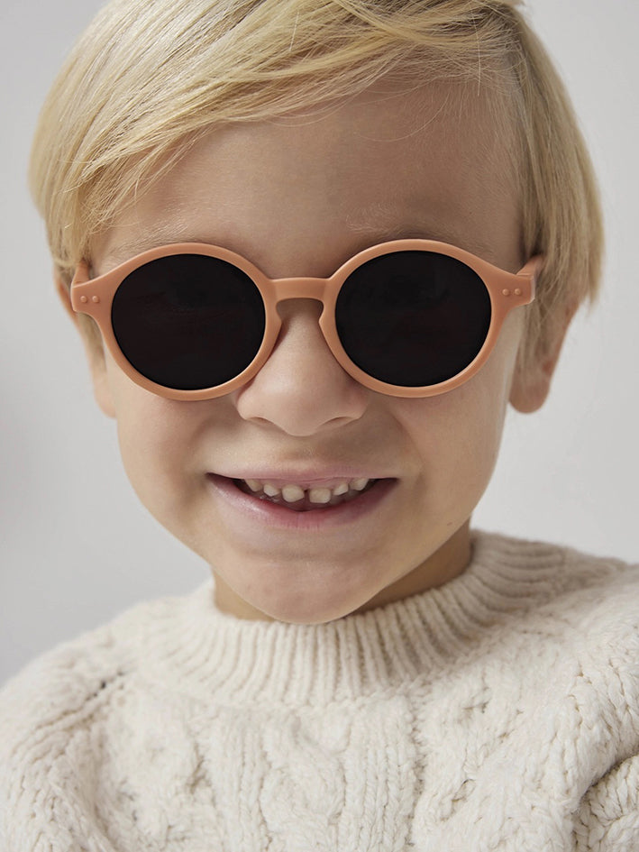 IZIPIZI looks after your little ones with its KIDS + range of Sunglasses in Apricot for children aged 3-5 years (head circumference 46-53 cm). The models protect children's eyes in every situation, from towns to countryside adventures and outdoor activities, summer and winter alike! Our 100% UV Category 3 (UV 400) polarized grey lenses offer maximum protection while respecting natural colours. They reduce light intensity and protect your infants from glare. The ultra-flexible, bisphenol-A free and hypo-allergenic frames are perfect for a children's everyday life. The straight arms mean they will also adapt to your children's growth. They come with a removable silicon strip for optimal hold. The lens of a Kid's eye is permeable to UVA and doesn’t become impermeable until adulthood. Therefore it’s necessary to protect Kids’ retinas with sun filters. Polarised sunglasses cat. 3 The children’s models are 100% UV (UV 400) Category 3 polarized lenses offer effective protection for your children’s eyes from ultraviolet rays (UV) and glare Frames specially adapted to Kids’ needs Ultra-flexible and ultra-resistant, IZIPIZI frames are perfect for your Kids’ everyday adventures and adapt to their growth thanks to their straight arms. Guaranteed bisphenol A-free and hypoallergenic.