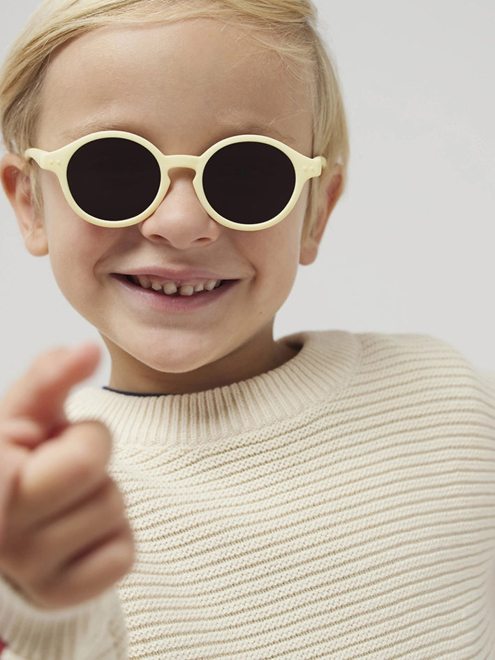 IZIPIZI looks after your little ones with its KIDS + range of Sunglasses in Lemonade for children aged 3-5 years (head circumference 46-53 cm). The models protect children's eyes in every situation, from towns to countryside adventures and outdoor activities, summer and winter alike! Our 100% UV Category 3 (UV 400) polarized grey lenses offer maximum protection while respecting natural colours. They reduce light intensity and protect your infants from glare. The ultra-flexible, bisphenol-A free and hypo-allergenic frames are perfect for a children's everyday life. The straight arms mean they will also adapt to your children's growth. They come with a removable silicon strip for optimal hold. Ultra-flexible and ultra-resistant, IZIPIZI frames are perfect for your Kids’ everyday adventures and adapt to their growth thanks to their straight arms. Guaranteed bisphenol A-free and hypoallergenic.