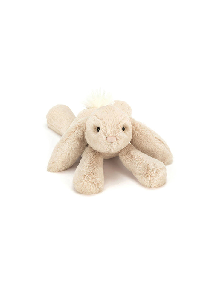 The Jellycat Smudge Rabbit Small is such a sleepy sweetie - always sprawling out, lazing on the bed or rug! Scrumptiously soft in oatmeal fur, this lop-eared lazer just captures the heart. An incredibly lopsy and loving companion, Smudge is a great gift for any bouncing baby. Bonnets and bobtails - we like it! Dimensions: 8cm x 9cm x 19cm Sitting Height: 8cm Main Materials: Polyester Inner Filling: Polyester Fibres, PE Beans Hard Eye