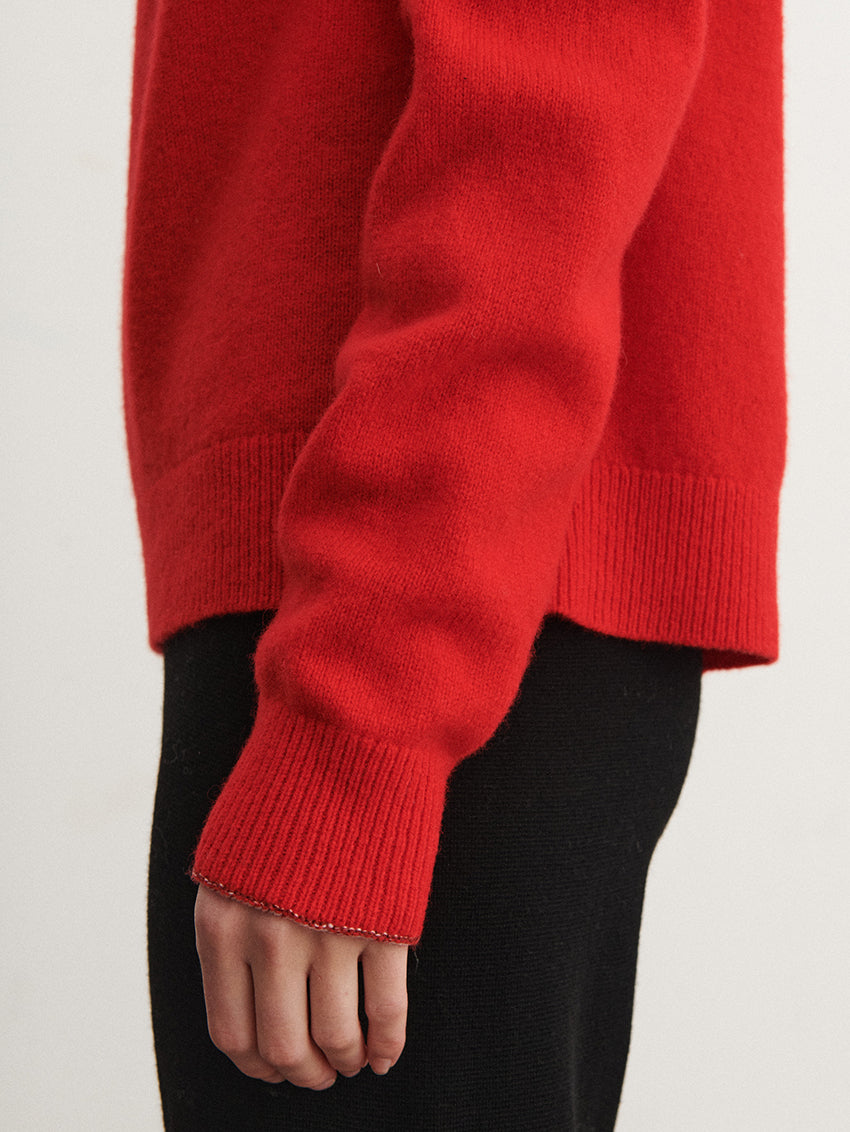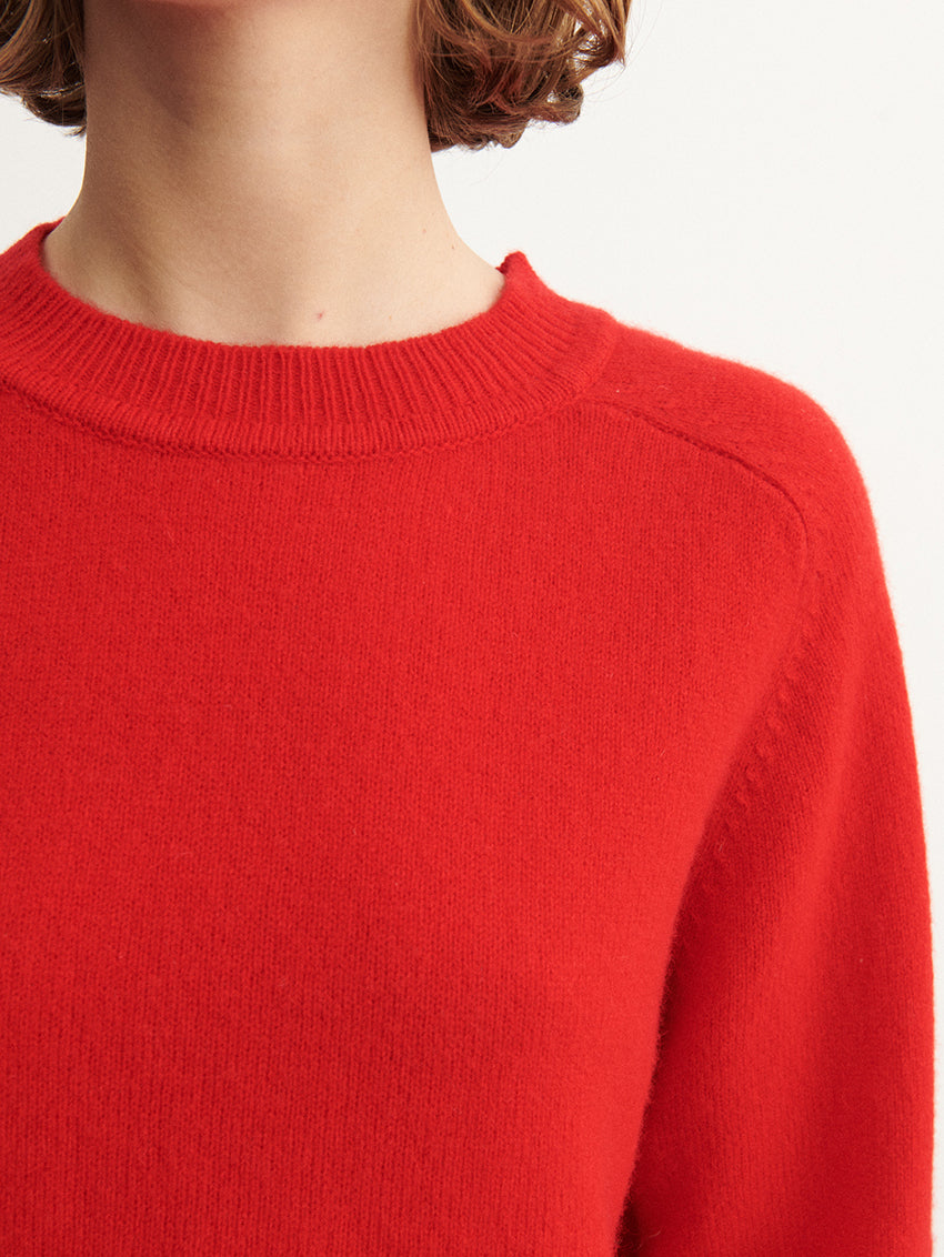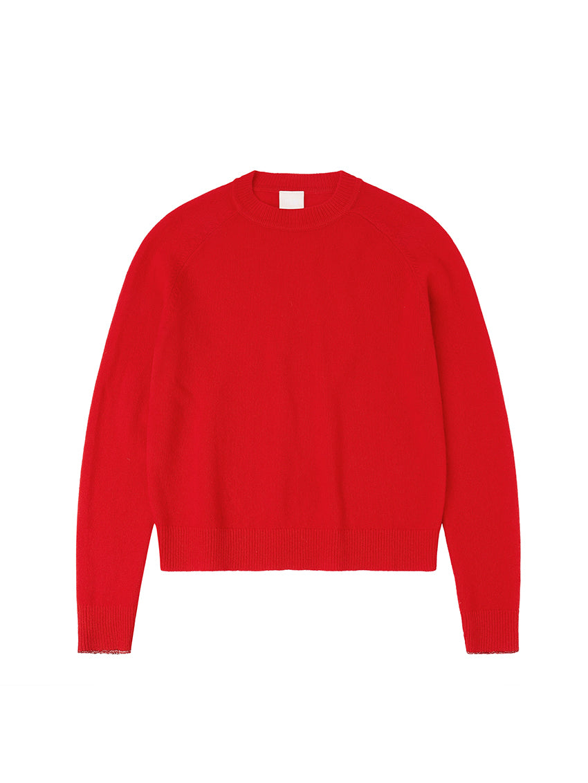 The sweater is made from classic, slightly hairy lambswool and features a subtle mélange edge detail at sleeve hems.