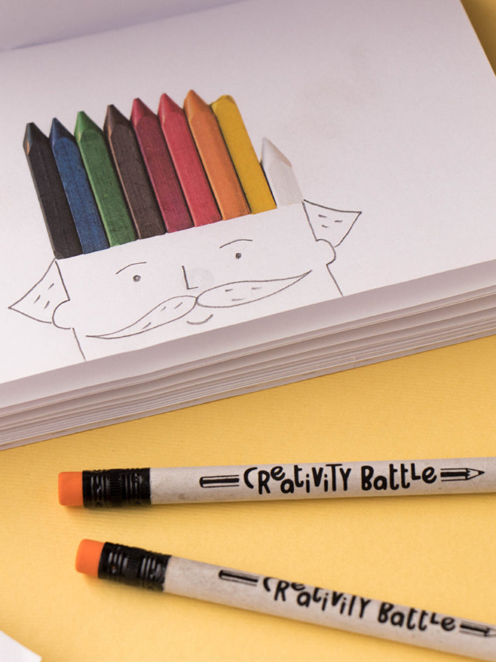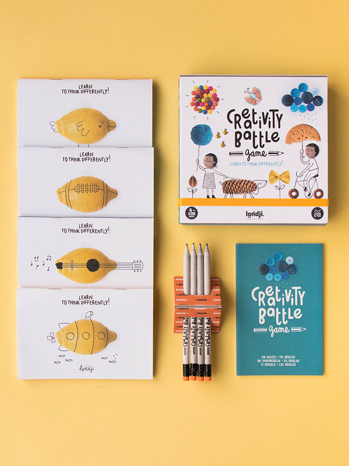 A notebook and a pencil are distributed to each player and they choose which sheet of paper they are going to draw on. The aim of the Londji Creativity Battle Game is to form a new image in the most creative way possible.