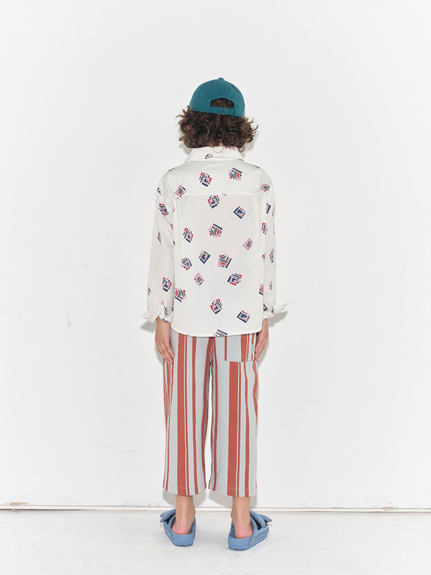 The Lounge Pant in Pearl Blue Stripe features a loose, cropped fit with an elasticated drawstring waist for a comfortable, adjustable fit. Crafted from soft organic cotton for all-day comfort, the printed stripes add a playful, retro vibe.