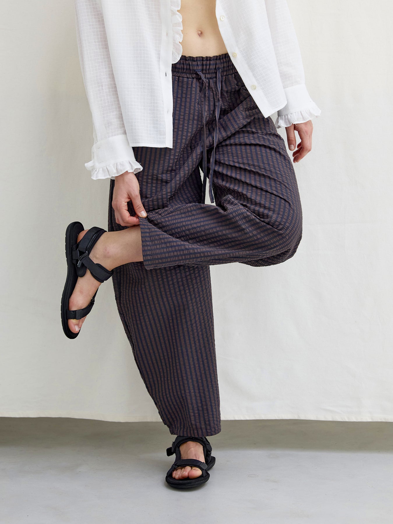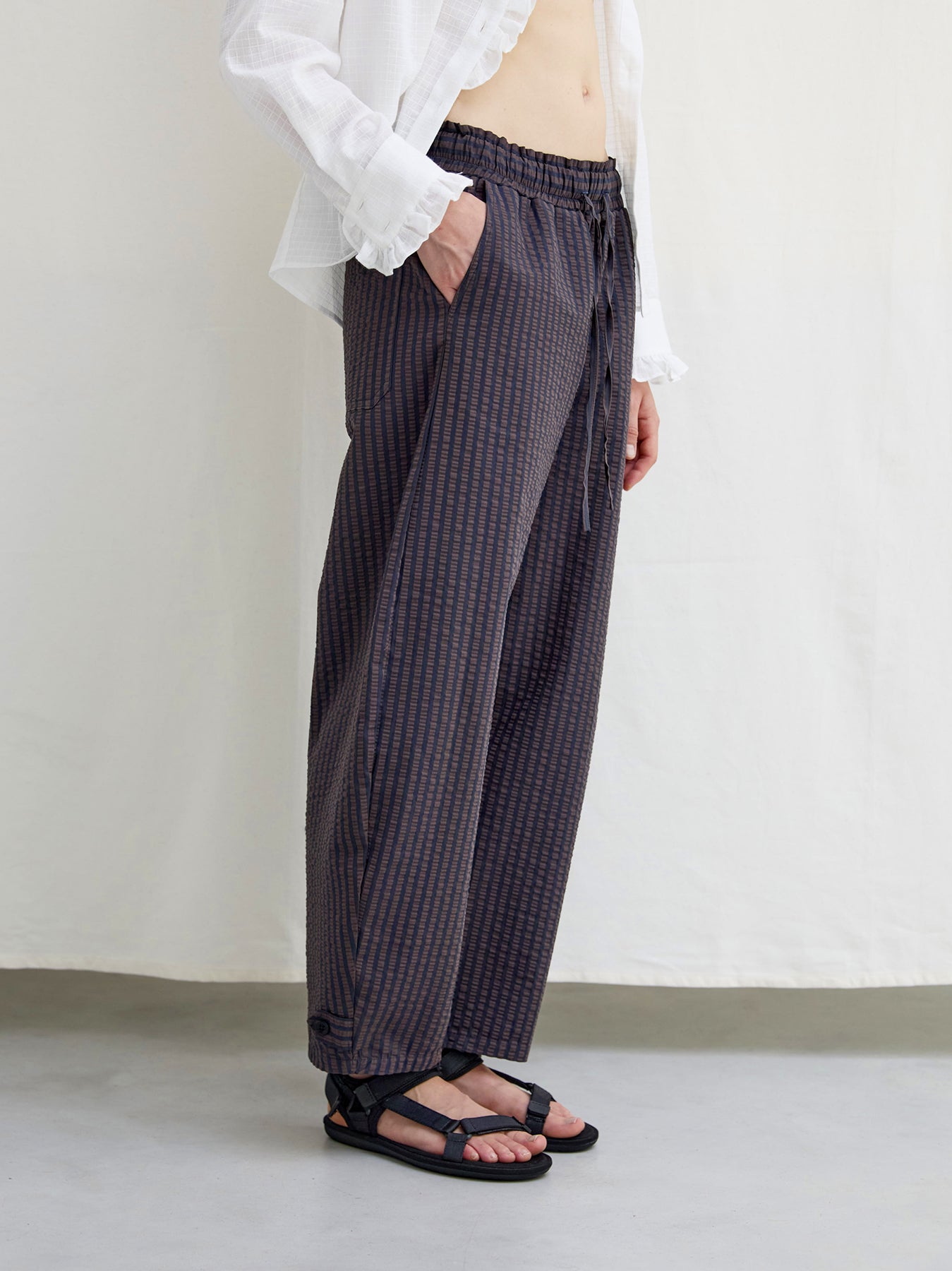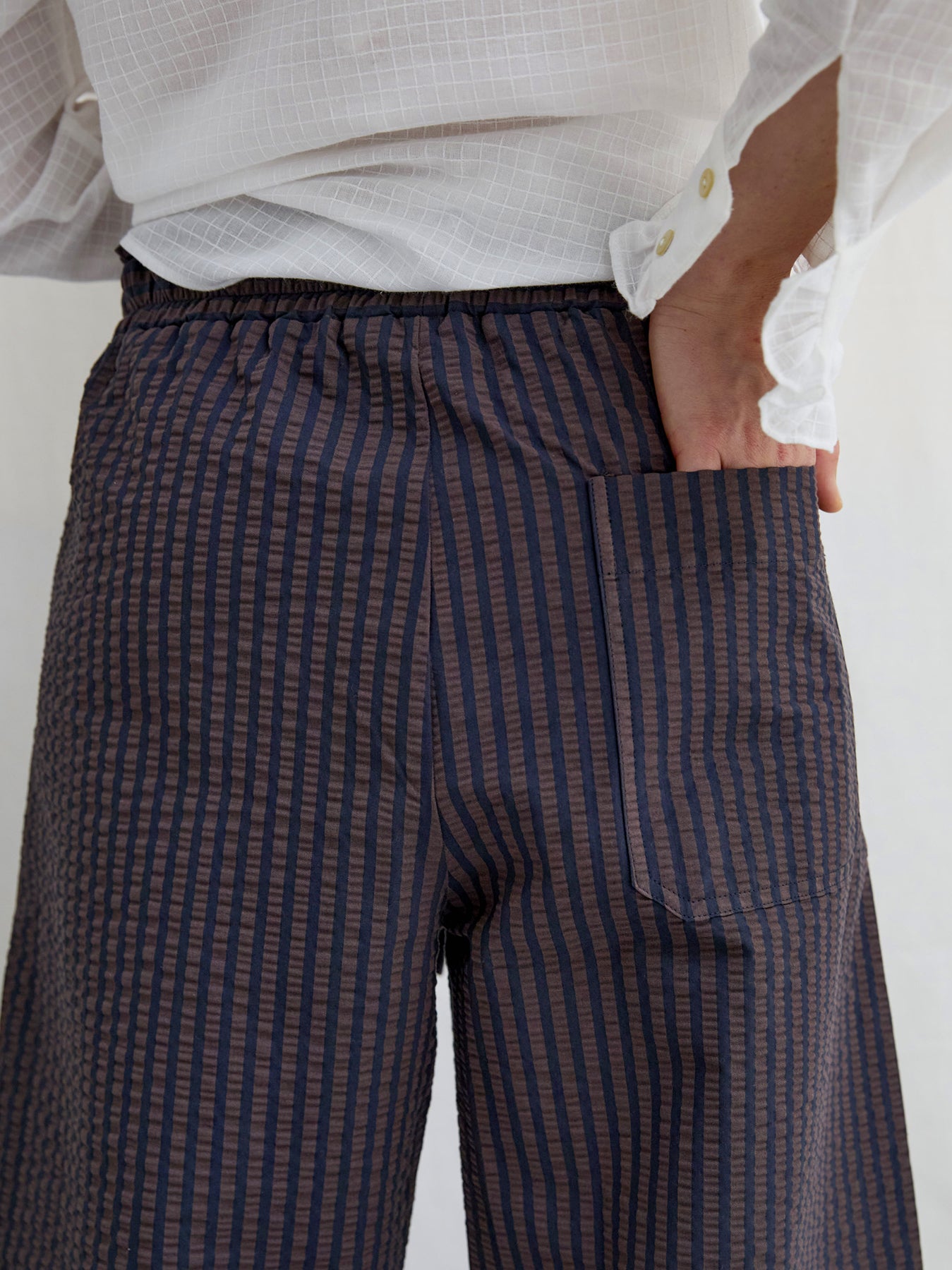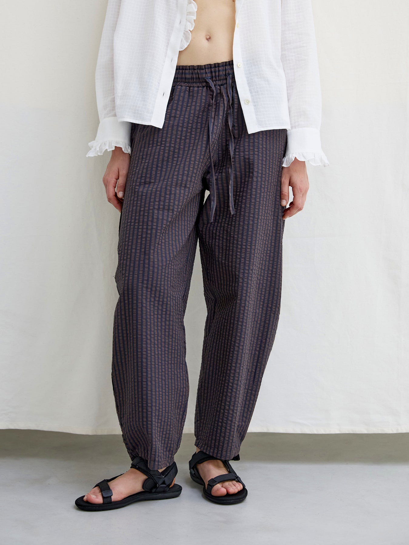 Luna Seersucker Trousers Brown Navy