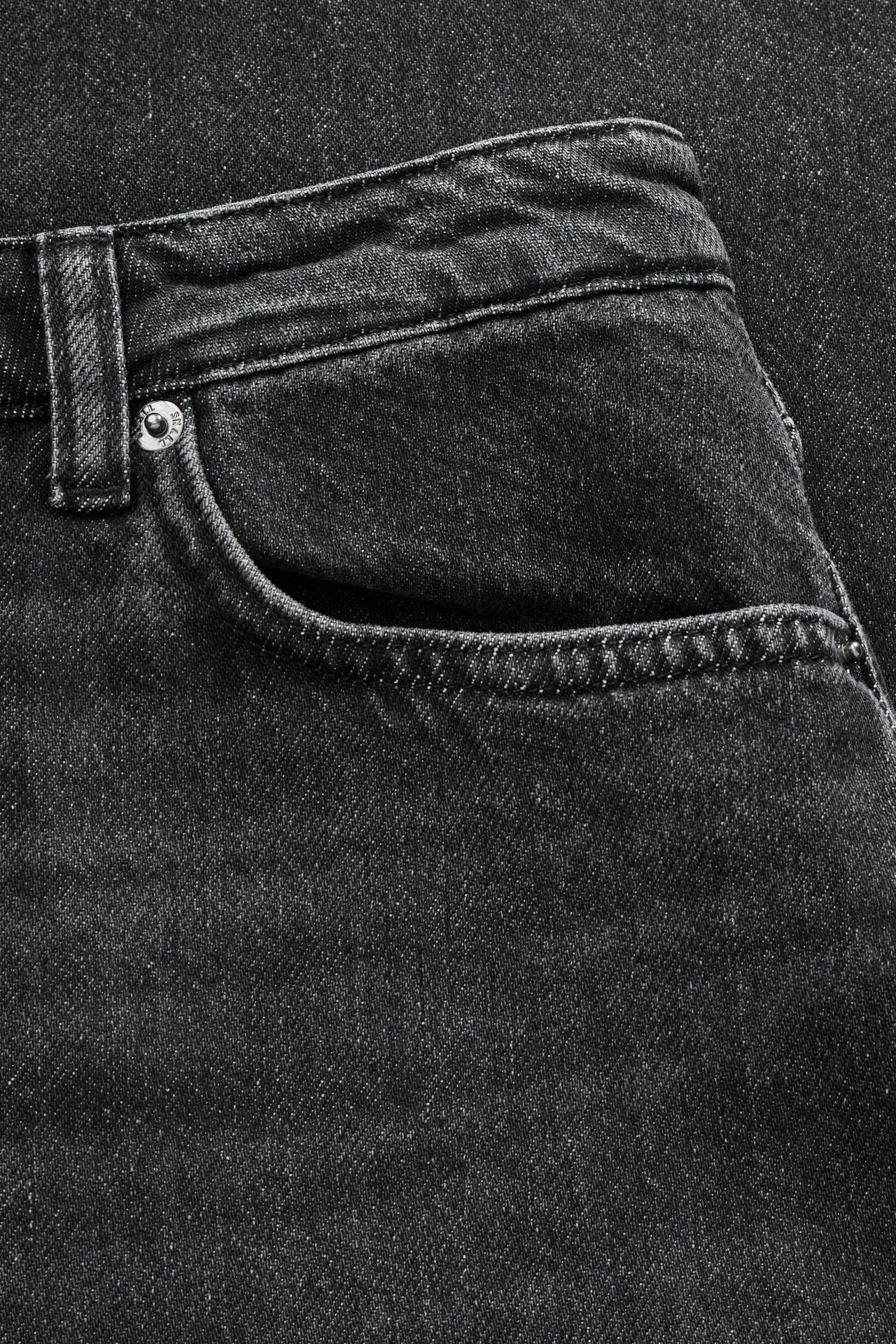 The straight leg regular length jeans have a high waist, a classic five pocket design and belt loops.