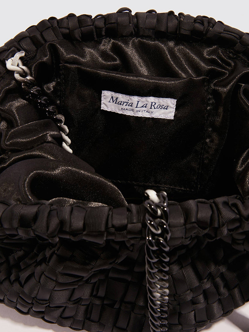 Small women's clutch in woven ribbon fabric, handmade on ancient looms.