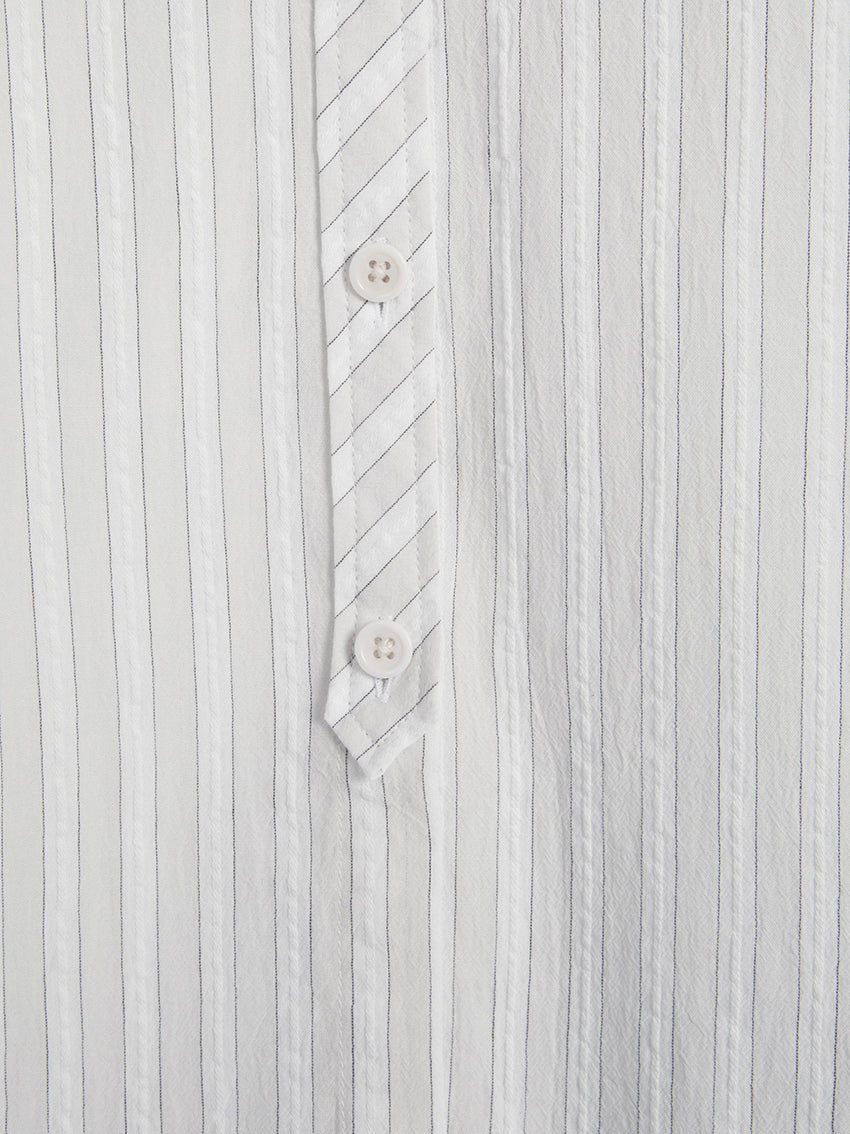 Long sleeve shirt made of Japanese millwashed pinstripe cotton.