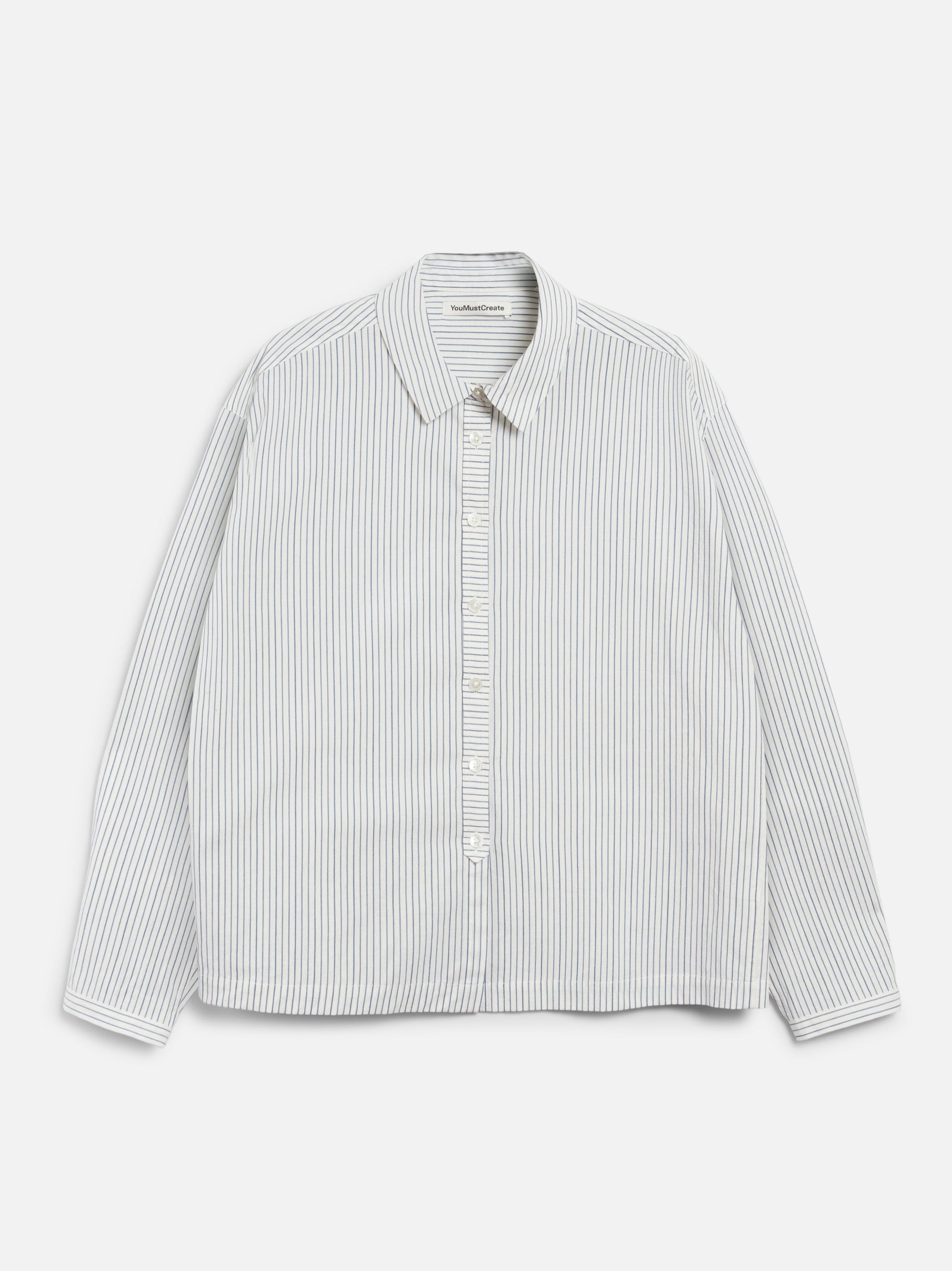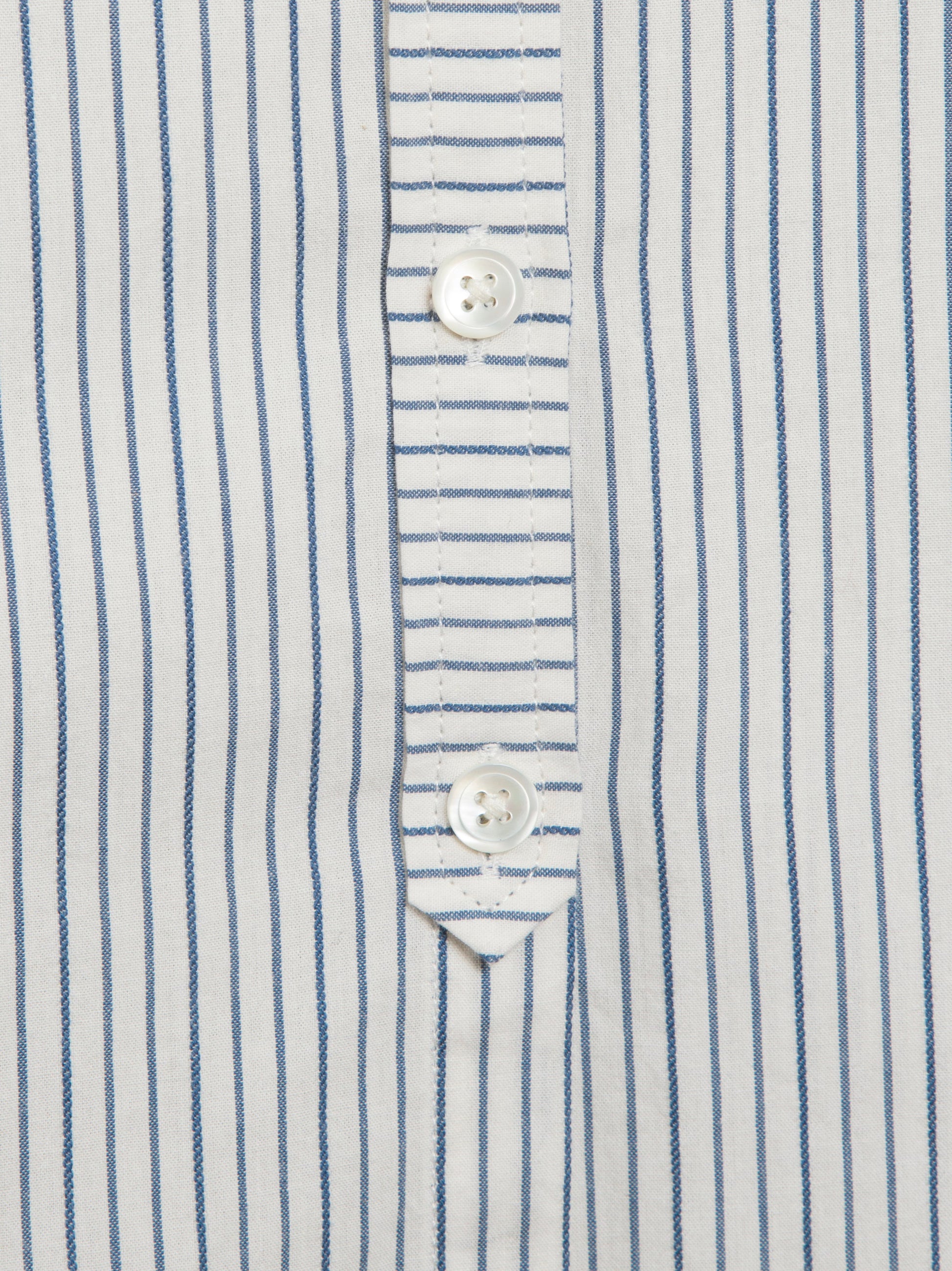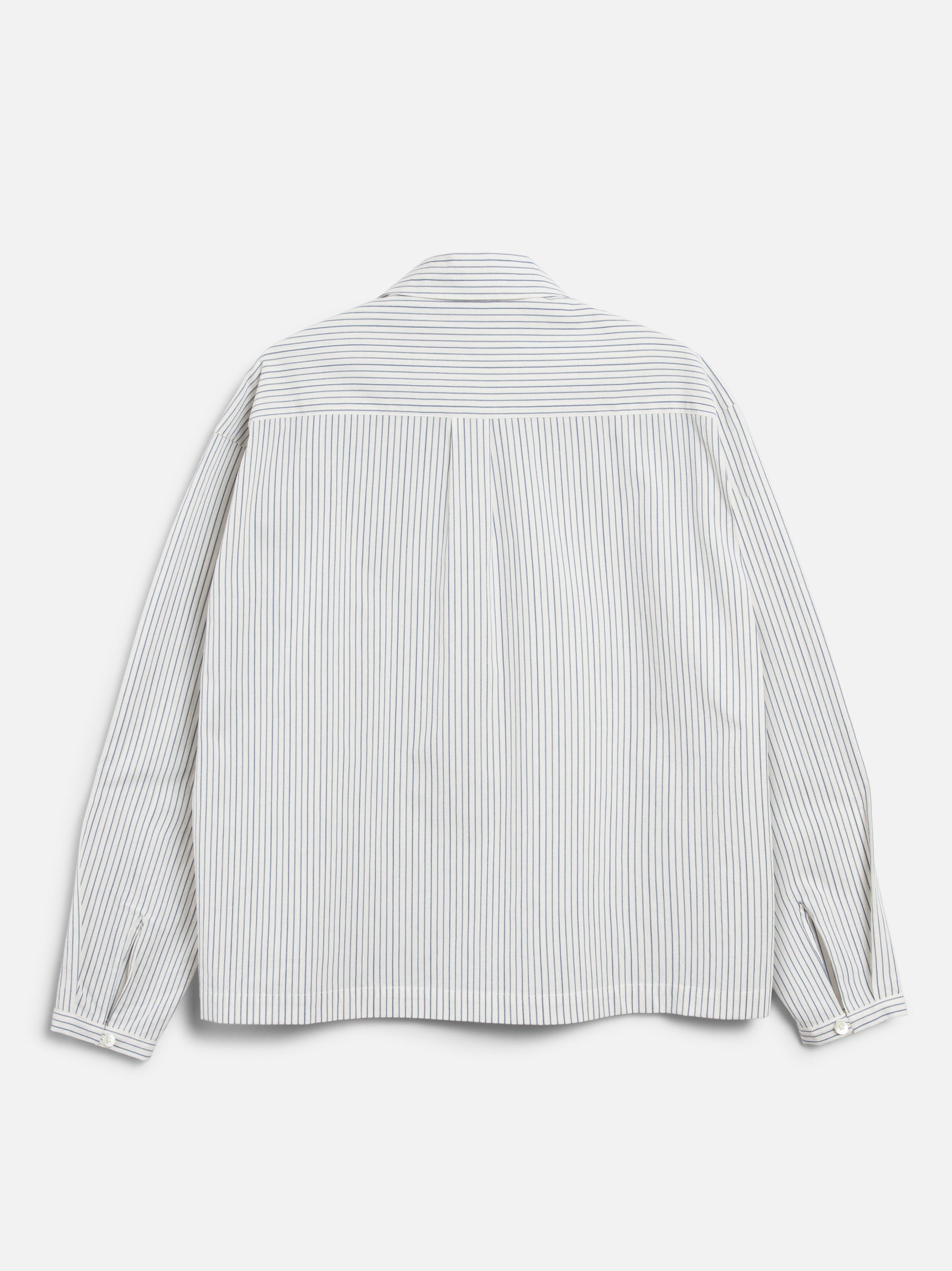A long-sleeve shirt cut from Japanese mill-washed pinstripe cotton, designed with a two-piece collar, bias-cut front placket, and Mother of Pearl button fastening. Finished in a regular fit.