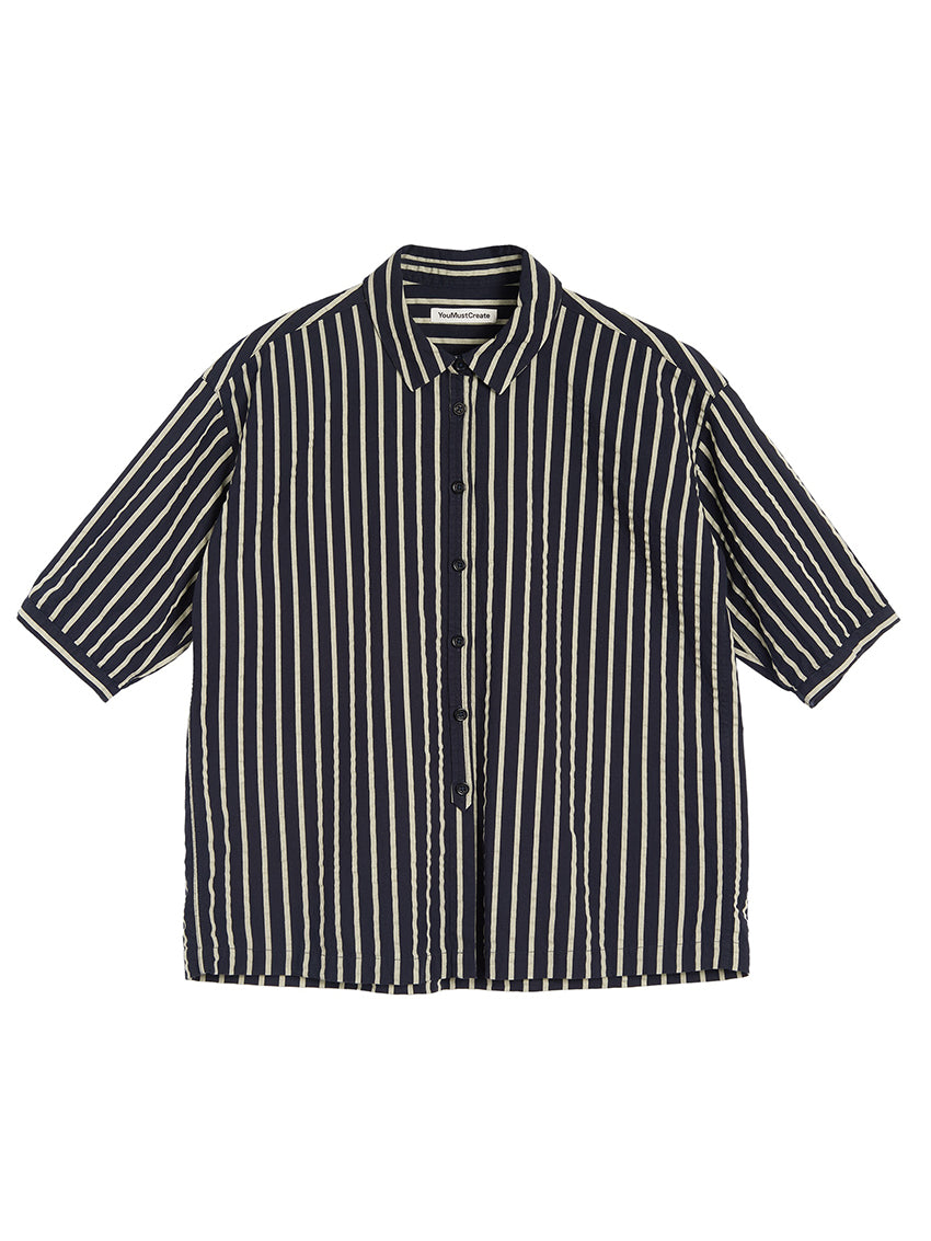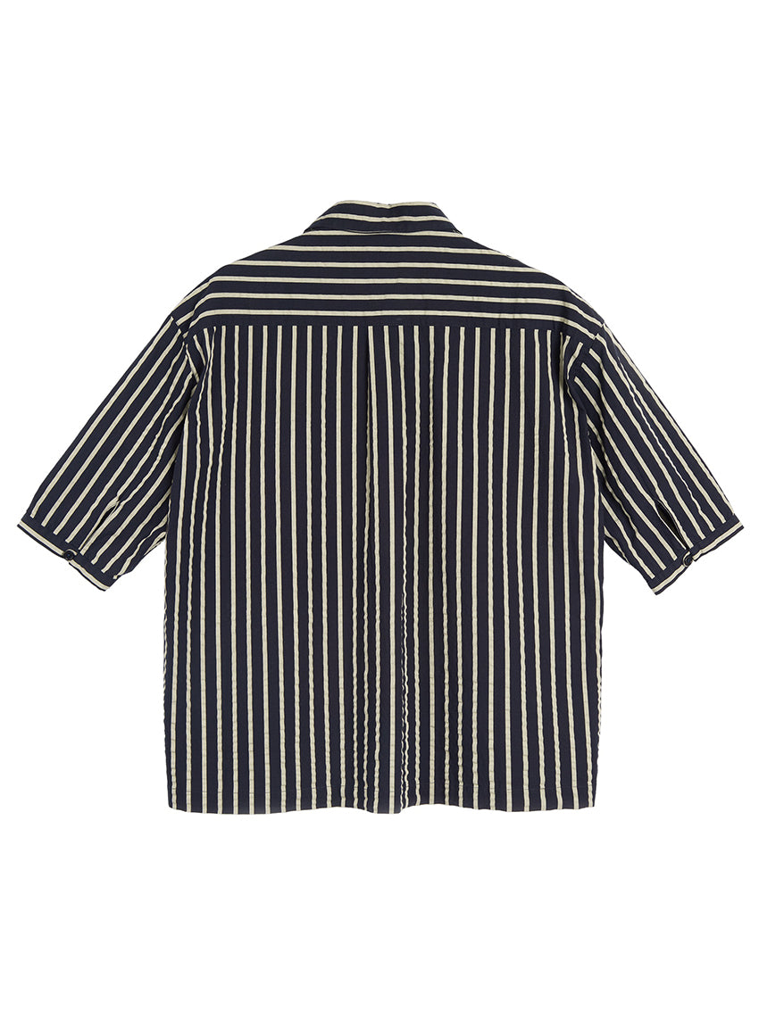 Striped short sleeve shirt made from Portuguese cotton stripe seersucker.